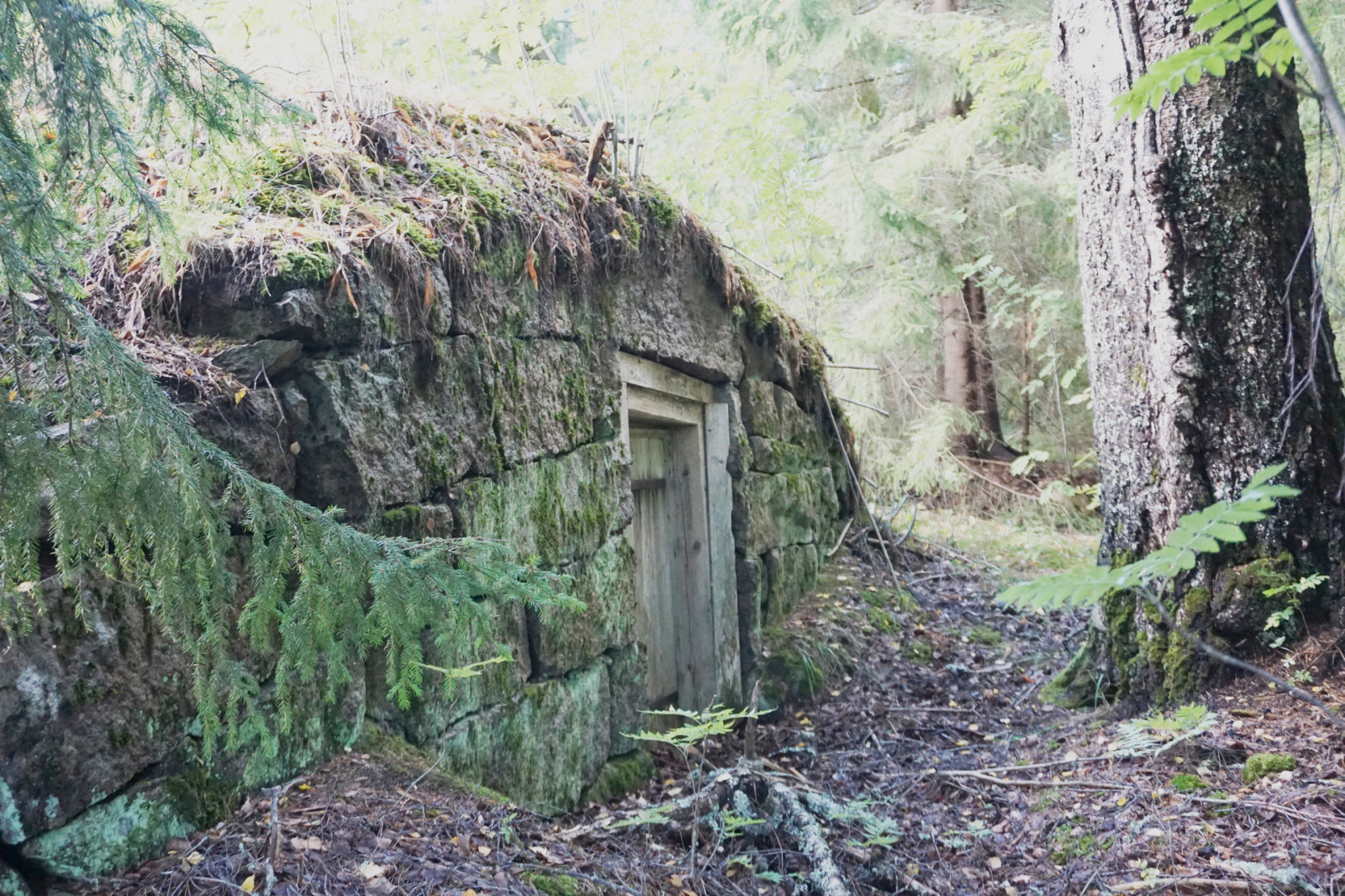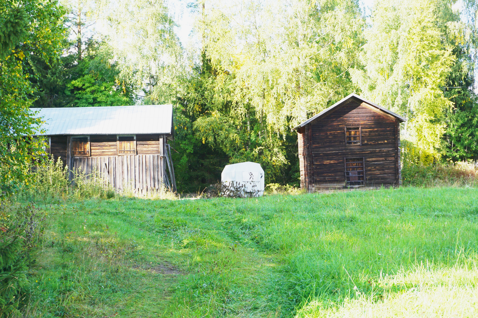 Diverse äldre byggnader i varierande skick såsom tre ängslador, sommarfejs, härbre, två jordkällare samt rester efter ett grishus med stomme av sten.
