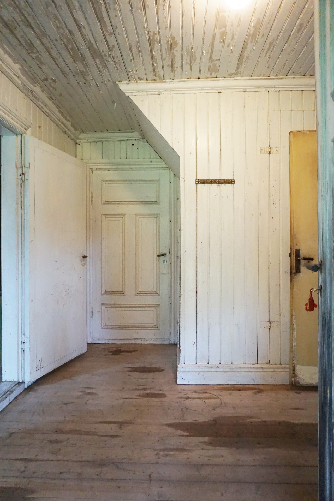 Kammare 1+2: Från det äldre köket nås även två separata kammare varav ena med en mindre klädkammare. Båda har med tapetserade väggar och samma typ av trägolv som i övriga huset.