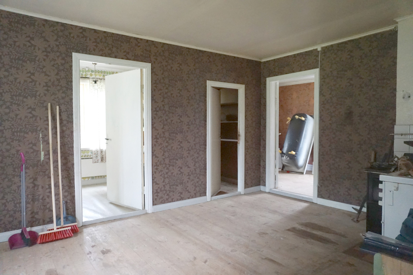 Byggnadstyp: 1,5-plan med oisolerat och oinrett övre plan.
