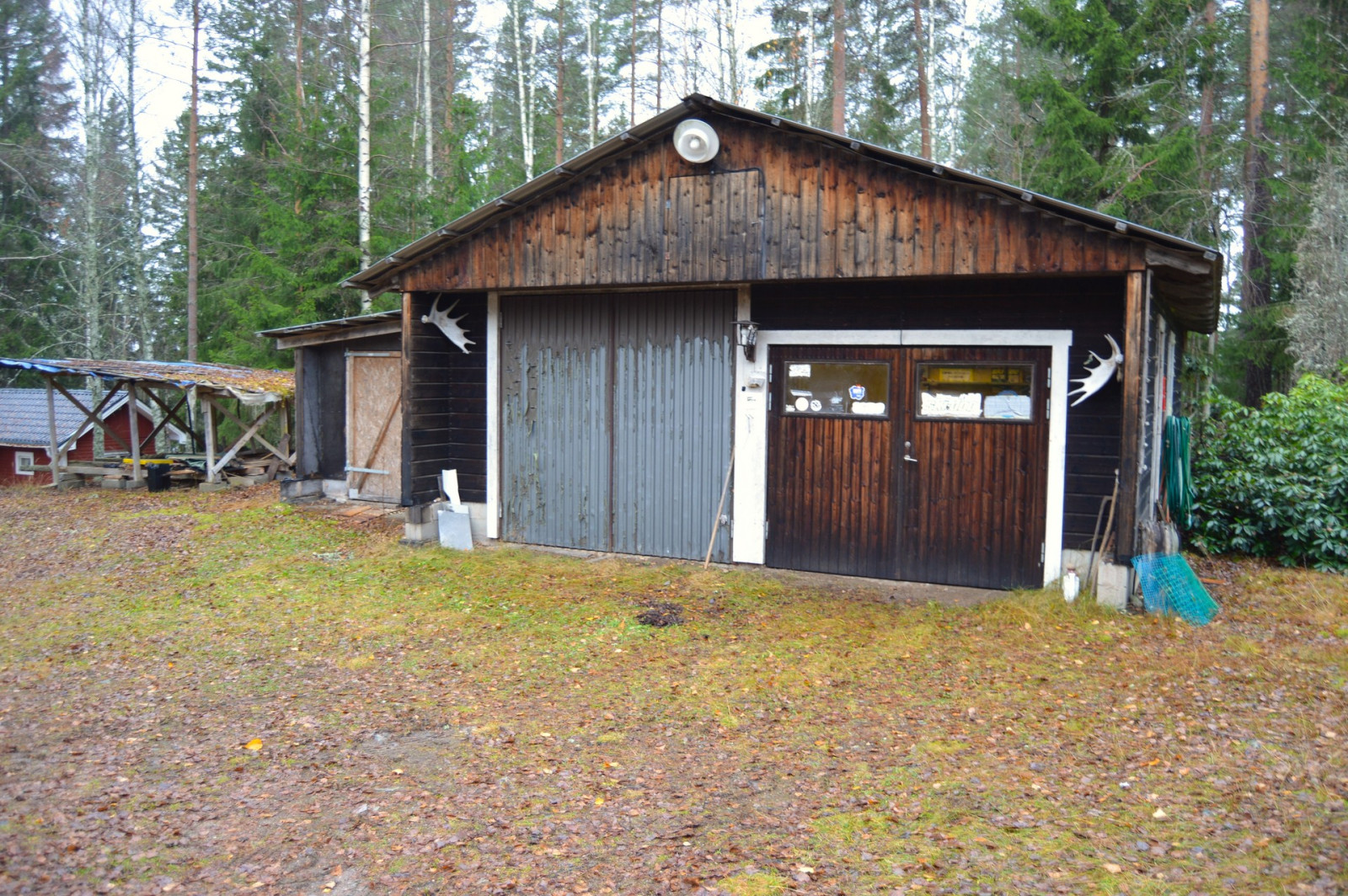 Friliggande garage om ca 70 m² uppfört 1986 på gjuten platta, svartmålad liggande träpanel och yttertak av plåt. Garaget har dubbla portar och plats för två bilar. Indragen el, även 3-fas. Längst in i garaget finns en avgränsad förrådsdel som sträcker sig längs halva baksidan. I taket finns en tvärgående I-balk med monterad balkvagn vilket underlättar vid motorlyft eller andra verkstadsarbeten. På sidan av garaget finns en tillbyggd del som rymmer en mindre bil eller extra förvaring, även den på gjuten platta.