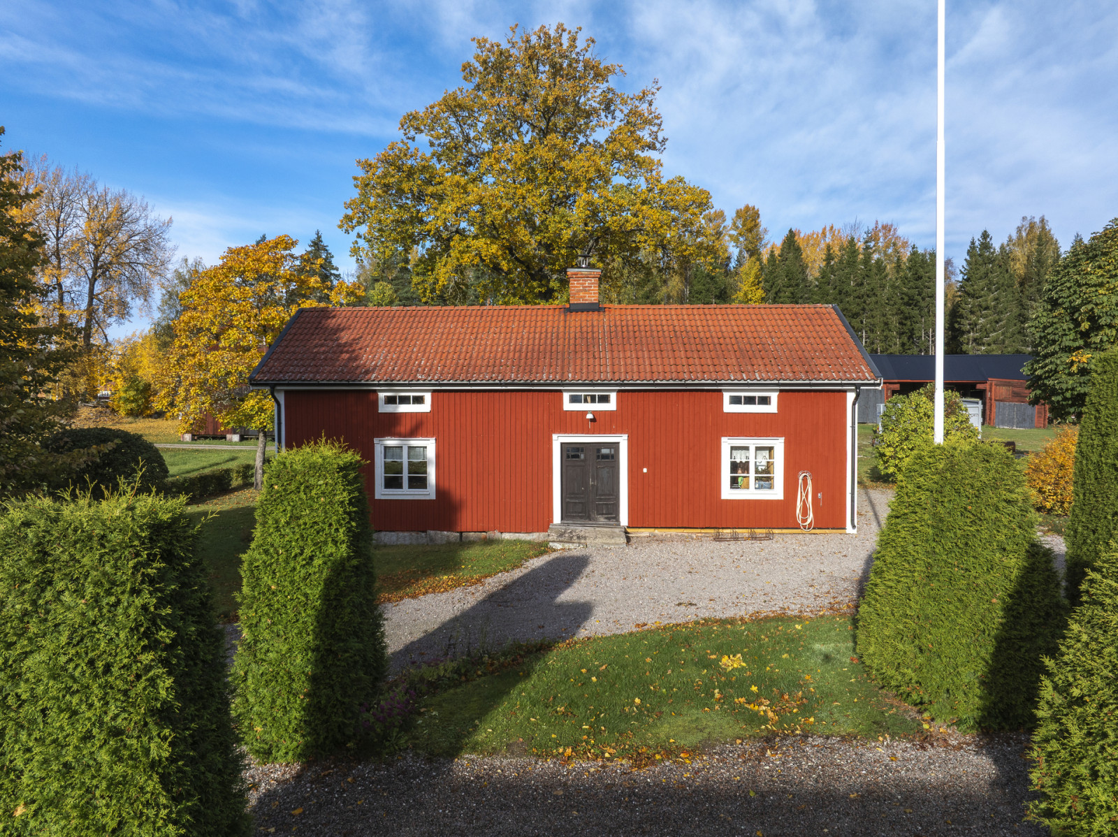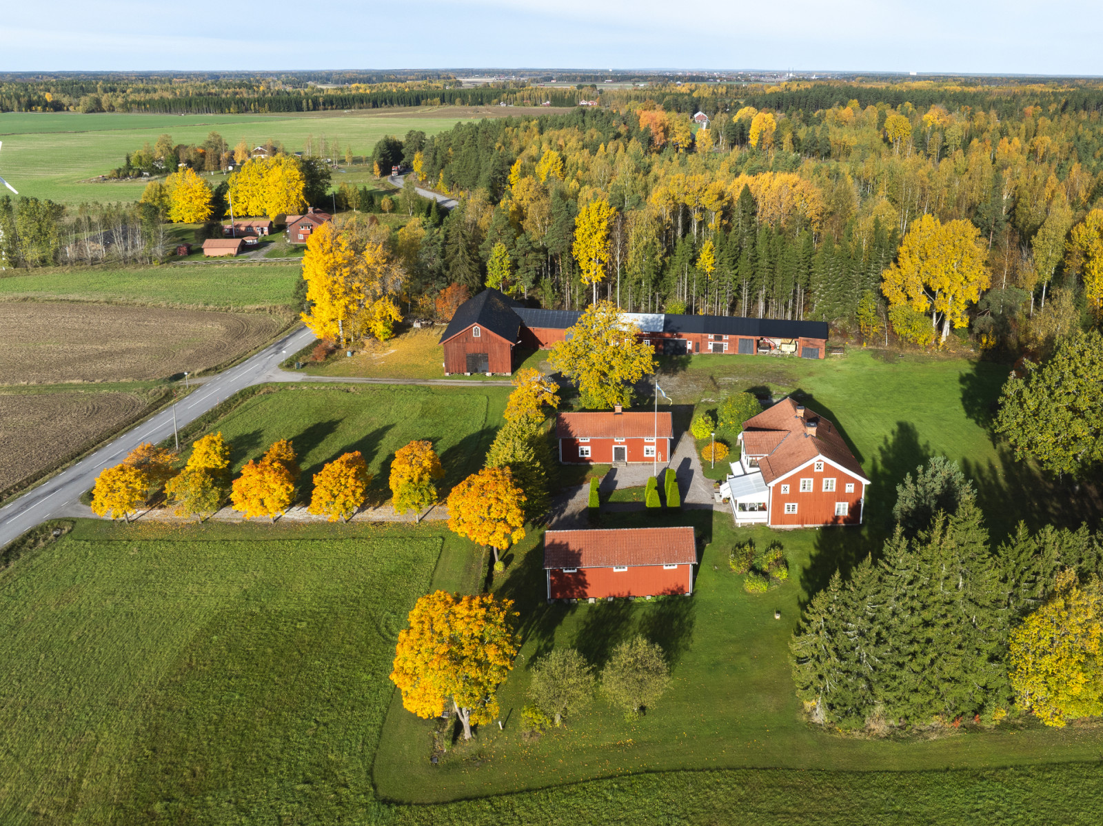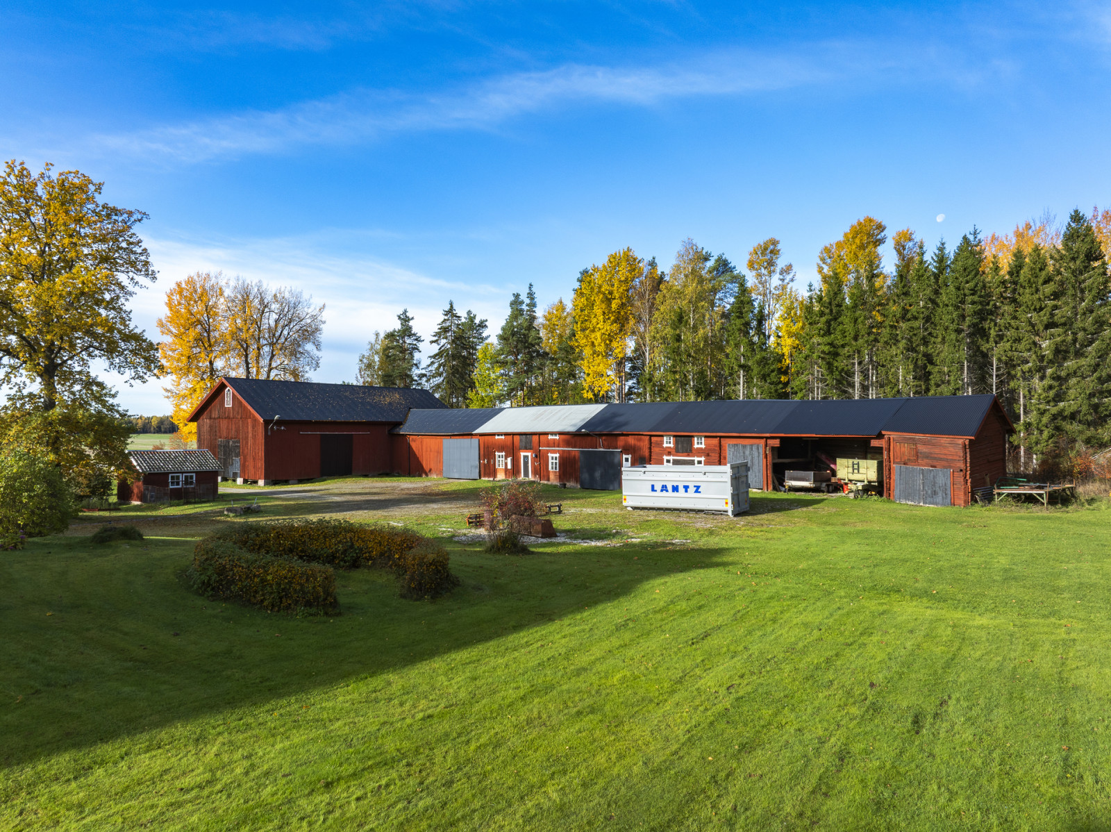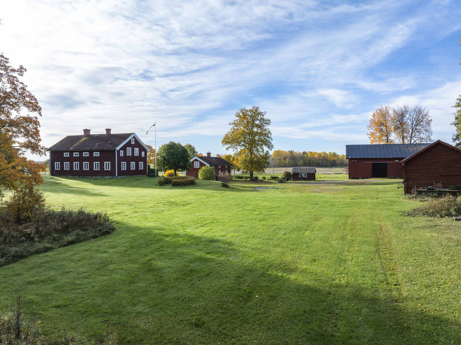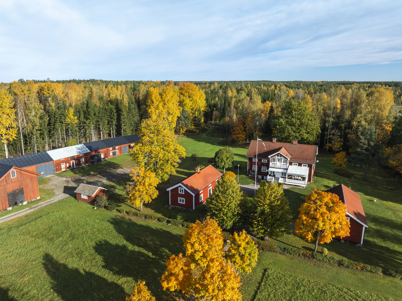 Svedbergs gård ligger vackert och centralt belägen på fastigheten med utsikt åt söder över den egna inägomarken. Gårdscentrum utgörs av mangårdsbyggnad med klassiskt faluröd och vita knutar. Flankerad av två flygelbyggnader och en allé som leder dig in mot mangårdsbyggnaden, vilket skapar en fin inramad gårdsbild. Därtill hör ekonomibyggnader som loge, ladugård och garage. Skogsmarken finns samlad både norr och söder om gården samt i ett ytterligare skifte åt nordöst. Markinnehavet uppgår till 76 ha, varav 55 ha utgör produktiv skogsmark och 18 ha inägomark.