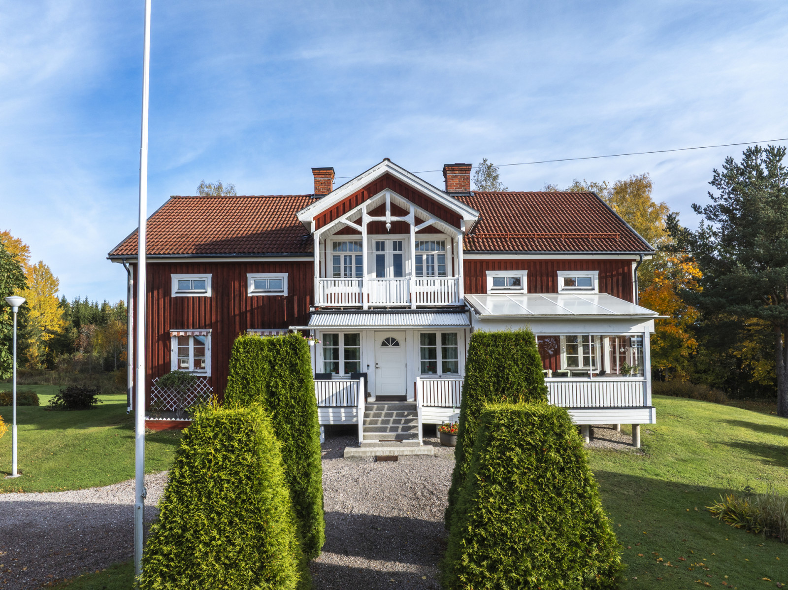 Den vackra mangårdsbyggnaden från 1880 är belägen med ett öppet söderläge. Omgiven av en stor tomt med buskar och en lönnallé som leder fram till bostaden. Byggnaden är uppförd på delvis källargrund och delvis krypgrund med timmerstomme. Fasaden är klädd i stående träpanel och sadeltak belagt med betongpannor. Fönster består av både isolerfönster och kopplade 2-glas. Ventilation genom självdrag. Vatten och avlopp är enskilt, vatten tas från en borrad brunn och avlopp till en 3-kammarbrunn med infiltrationsbädd. Uppvärmning sker genom bergvärmepump (2019) som kan kompletteras med eldning i kamin på nedre plan. Övriga eldstäder ej i bruk.