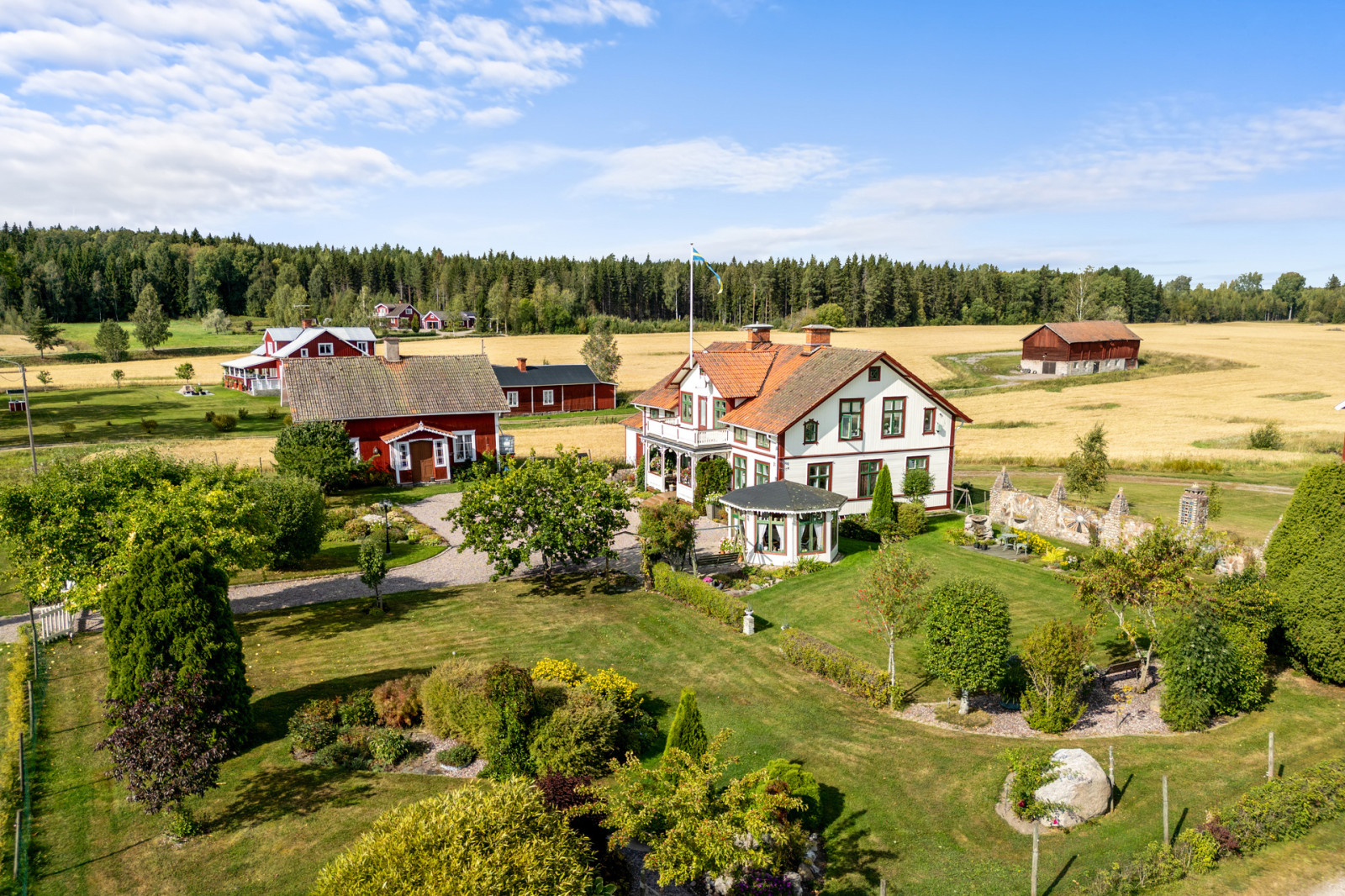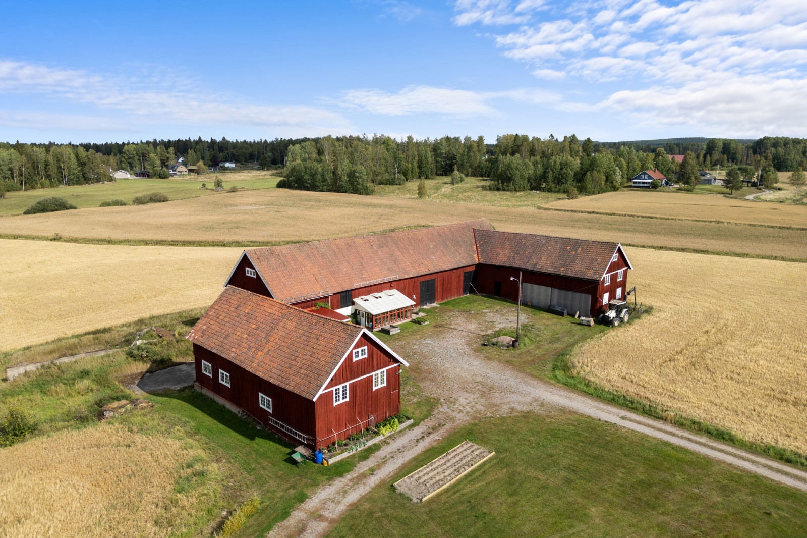 Välkommen till en unik oas där natur och konst förenas i perfekt harmoni. Denna charmiga gård erbjuder inte bara en idyllisk omgivning med tillhörande åkermark, utan även en drömmig trädgård med bärbuskar och odlingsmöjligheter som endast begränsas av tid och ork!