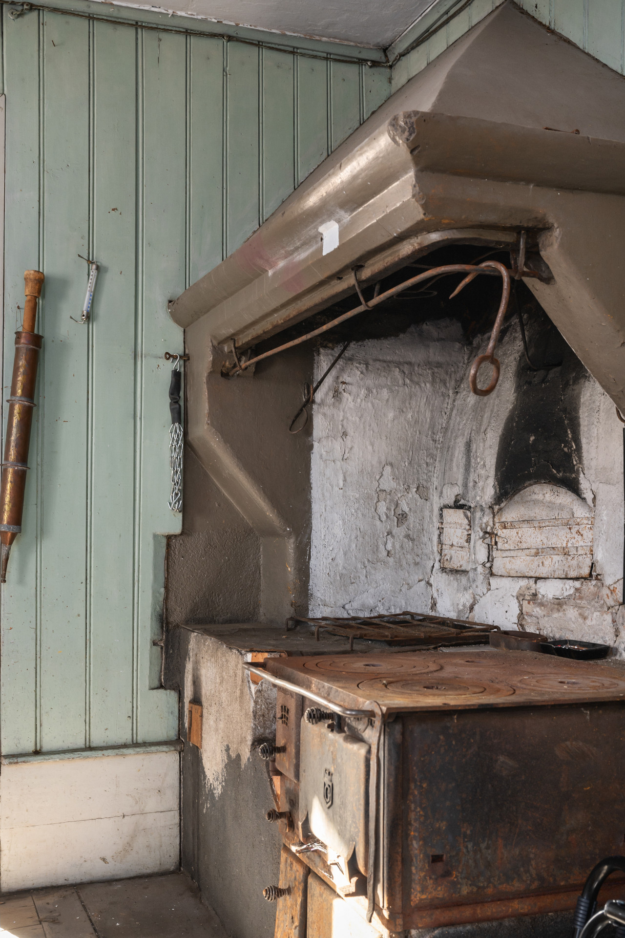 Av eldstäderna i huset är vedspisen i kök, den öppna spisen i ett rum samt pelletspannan godkända att elda i. Kakelugnarna är ej godkända.
