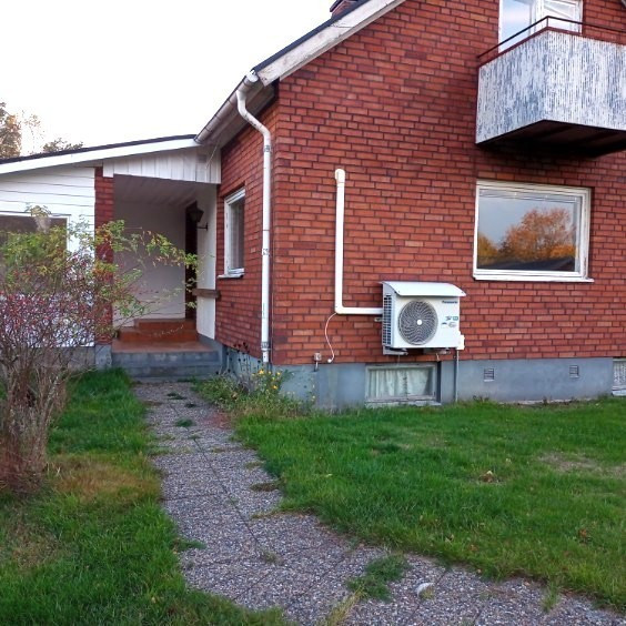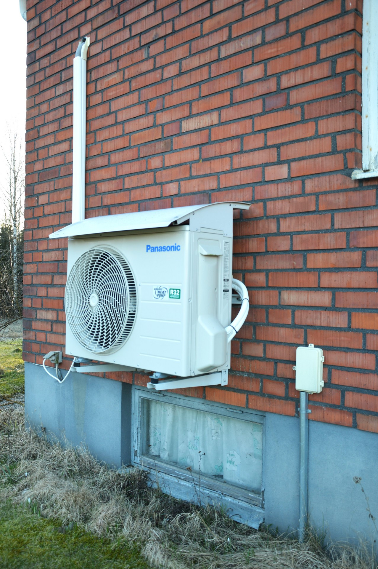 Källarnedgång. Luftvärmepump (Panasonic, installerad 2024).