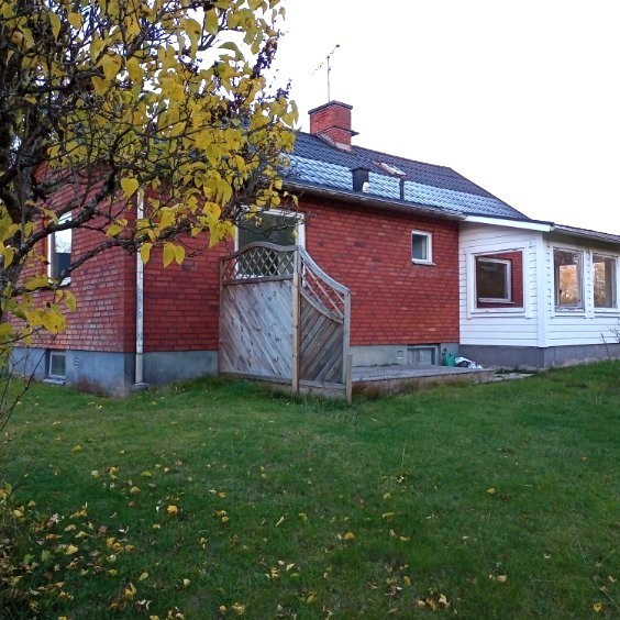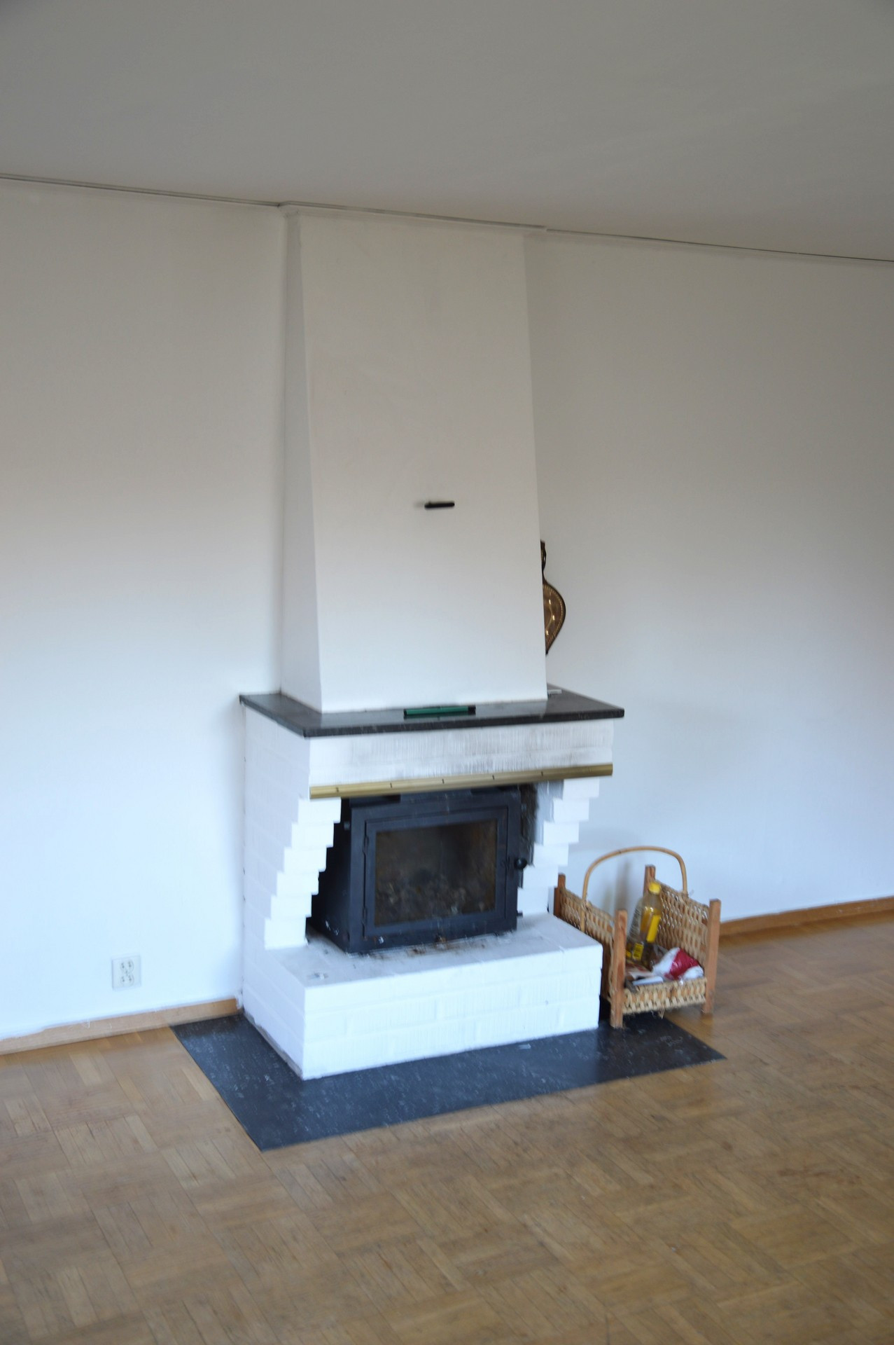 -Finrum med öppen spis och braskassett. Även inomhusdel luftvärme och inkommande fiber.