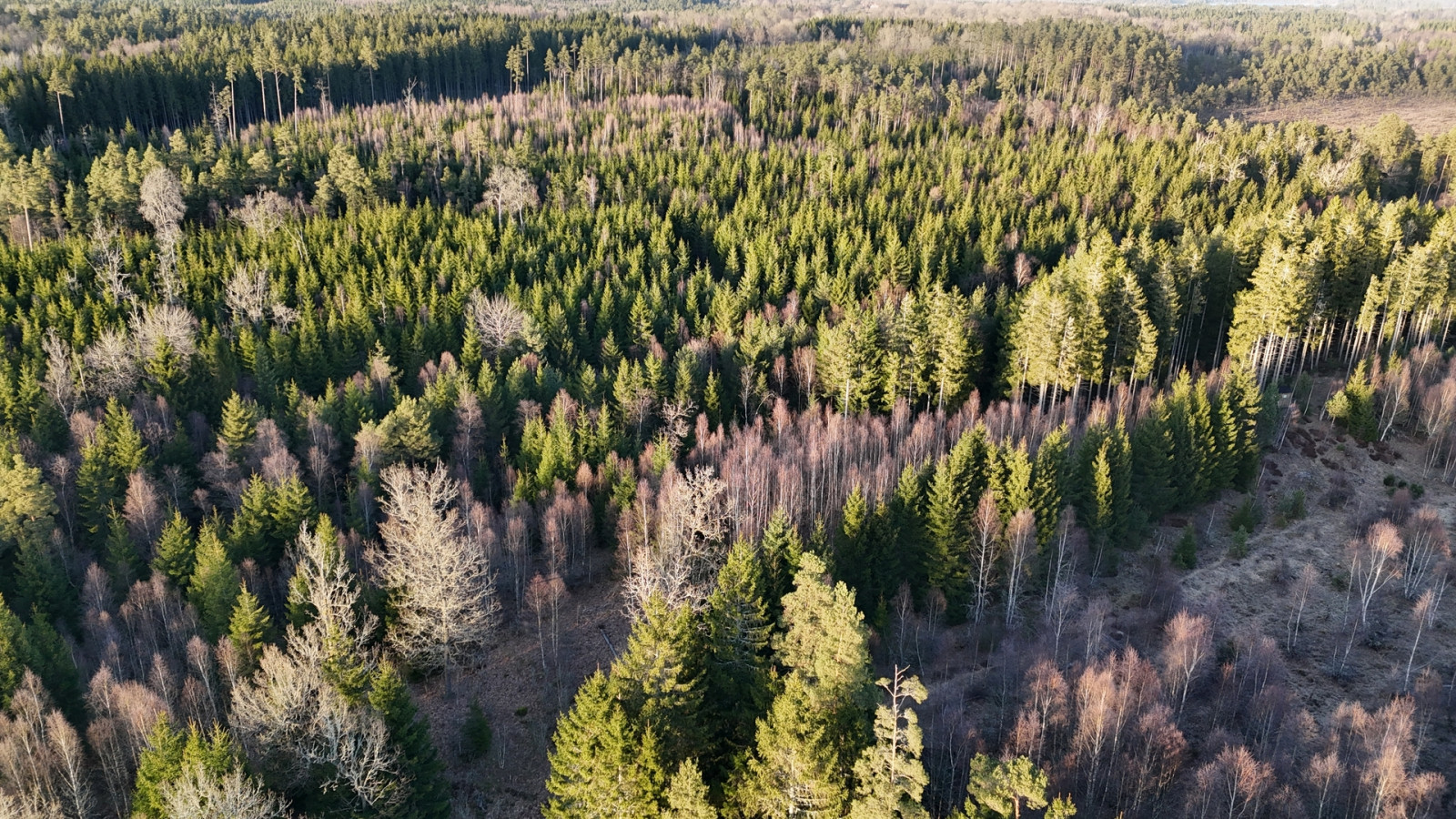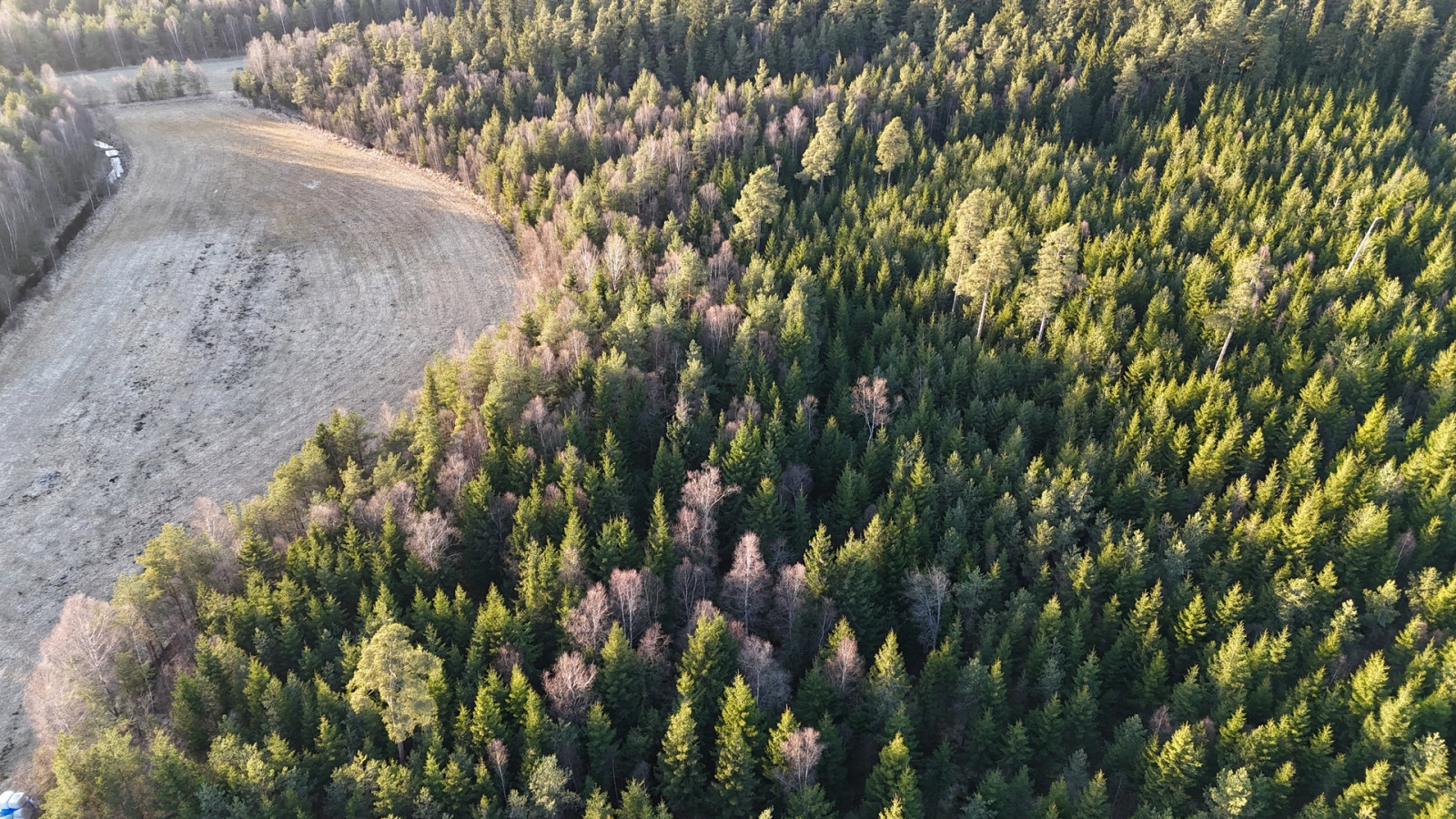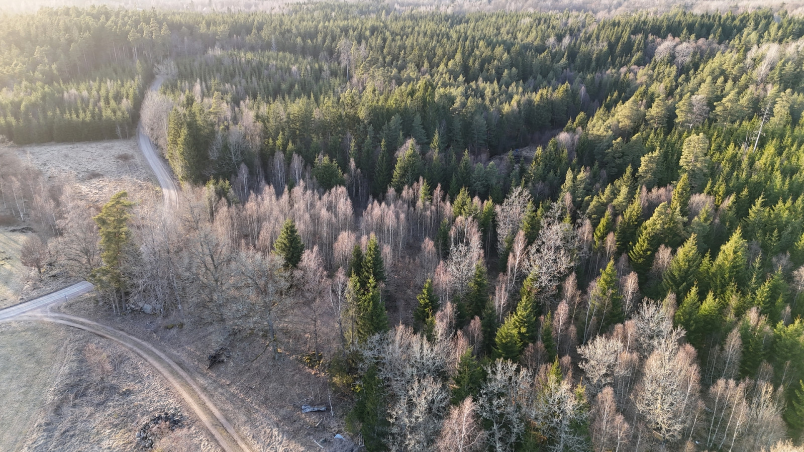 Enligt skogsbruksplanen uppgår den produktiva skogsmarksarealen till ca 40,6 ha och dess virkesförråd till ca 5 418 m³sk (medeltal ca 133 m³sk/ha). Volymtillväxt 2025 tillkommer (ca 239 m³sk) minus en mindre volym gallringsavverkning och vedhuggning (ca 50 m³sk). Sålunda bedöms fastighetens virkesförråd vid salutillfället till ca 5 600 m³sk (medeltal ca 138 m³sk/ha).