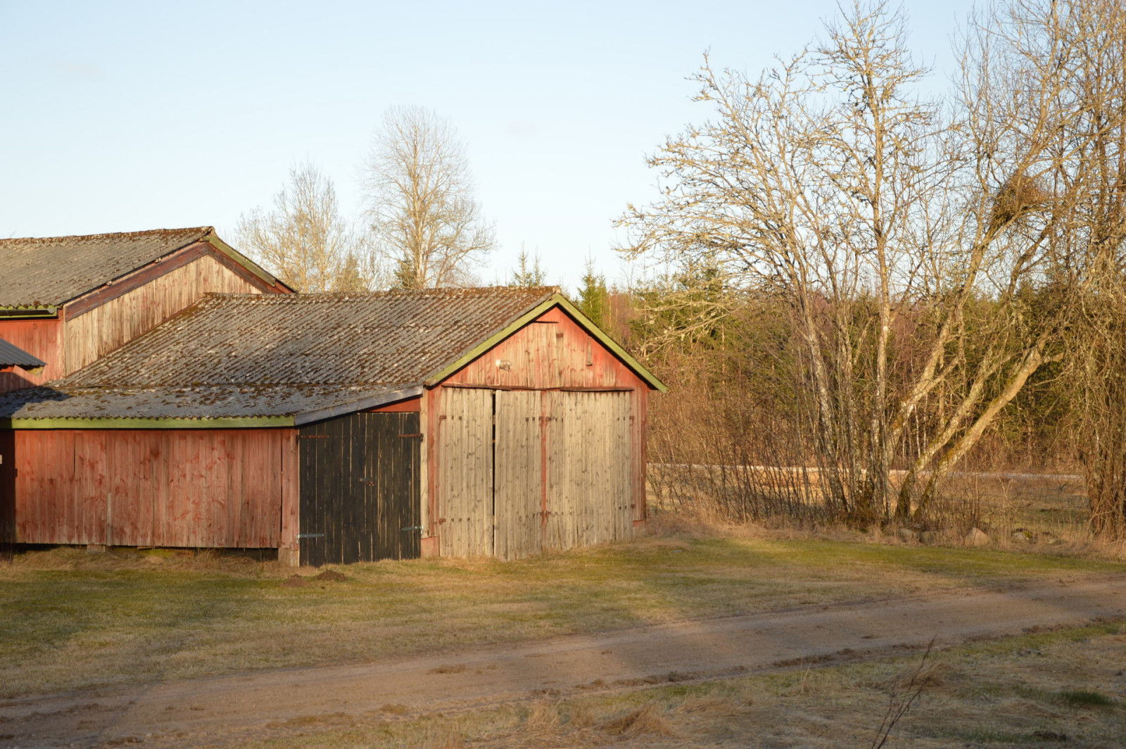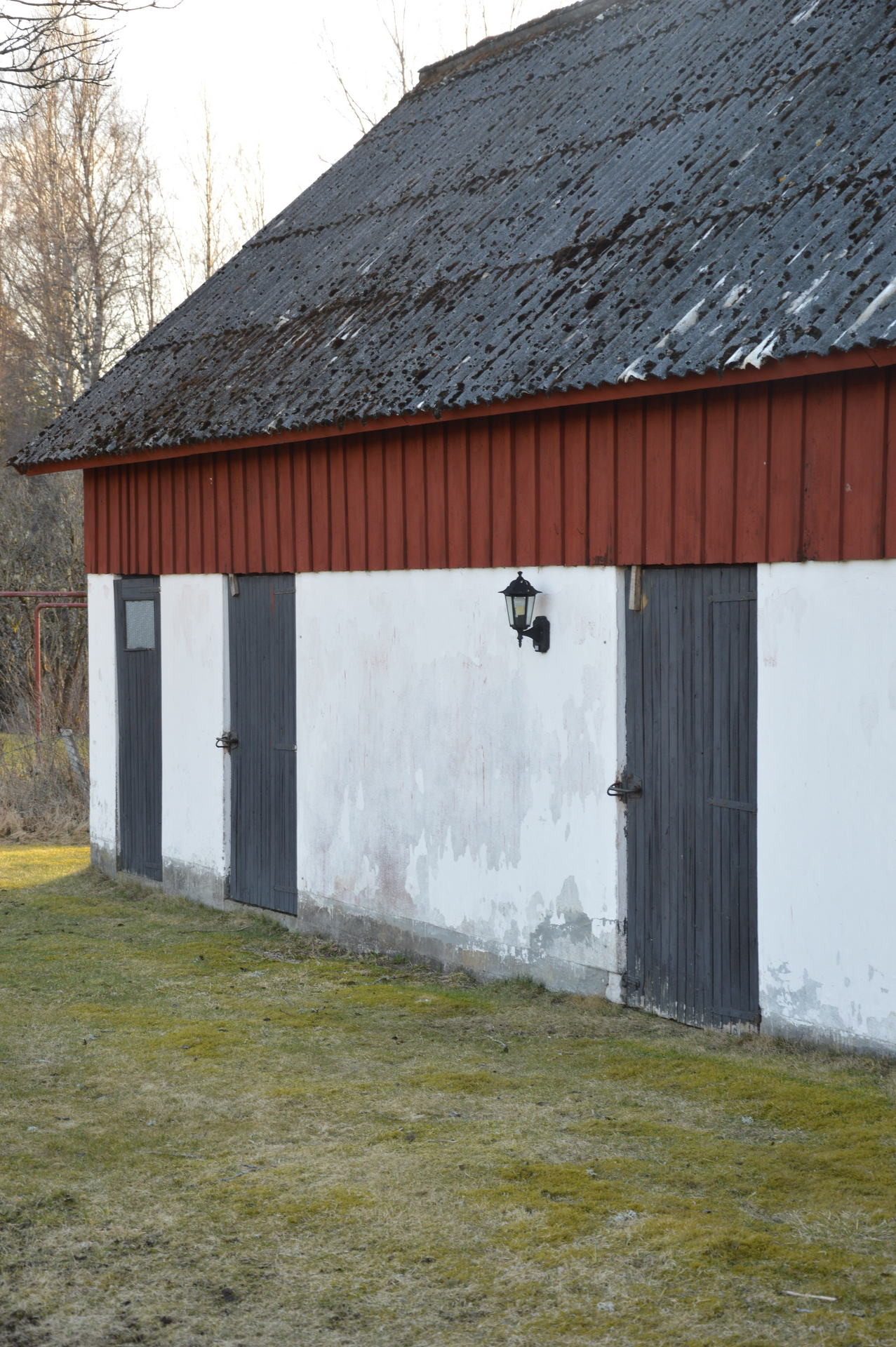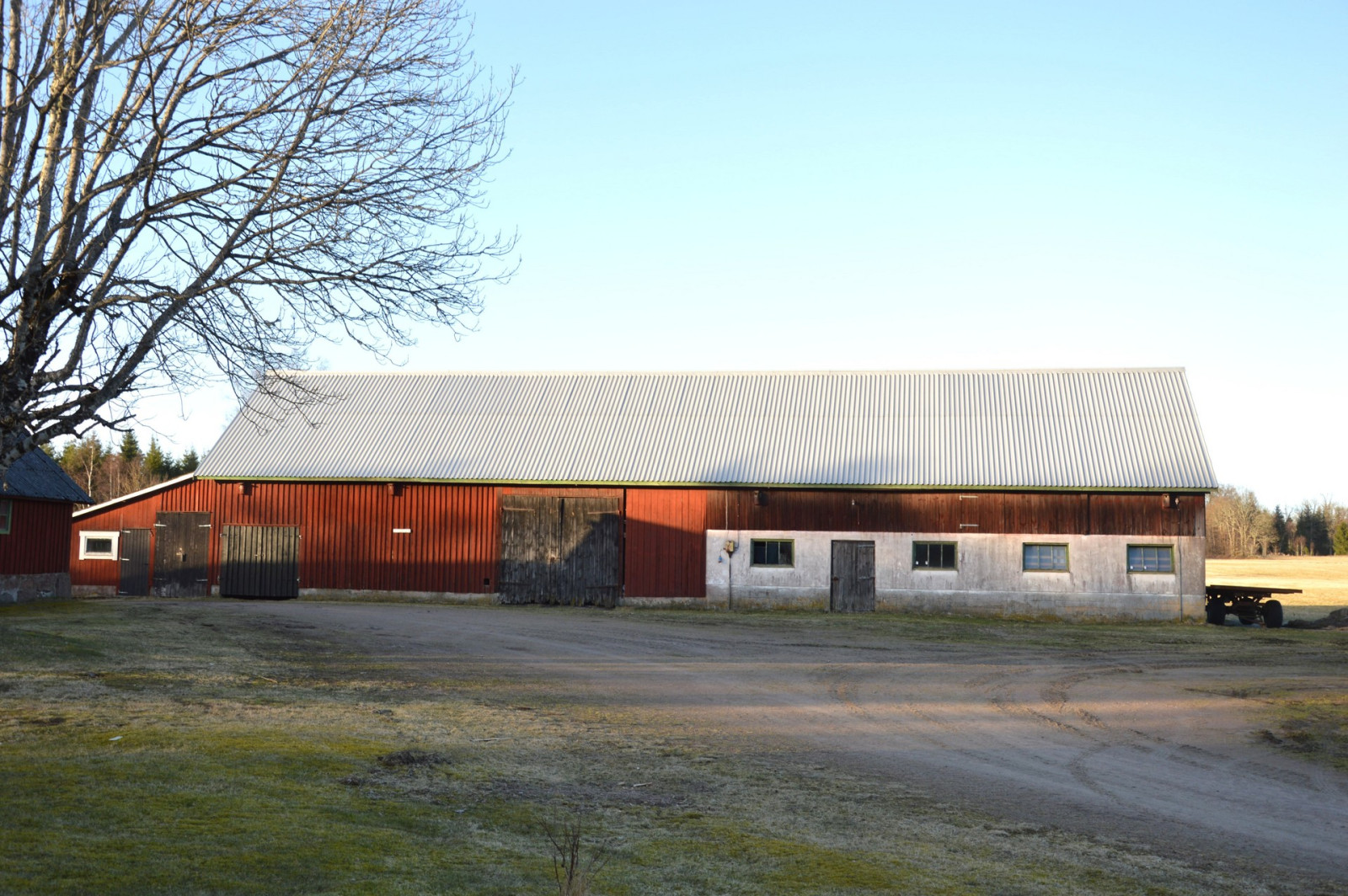 Uppskattad byggnadsstorlek ca 140 kvm. Nybyggnadsår ca 2000 enligt säljaren. Uppförd i trä, stolpgrund och väggar/tak av plåt. Tre fack med grusgolv. El finns.