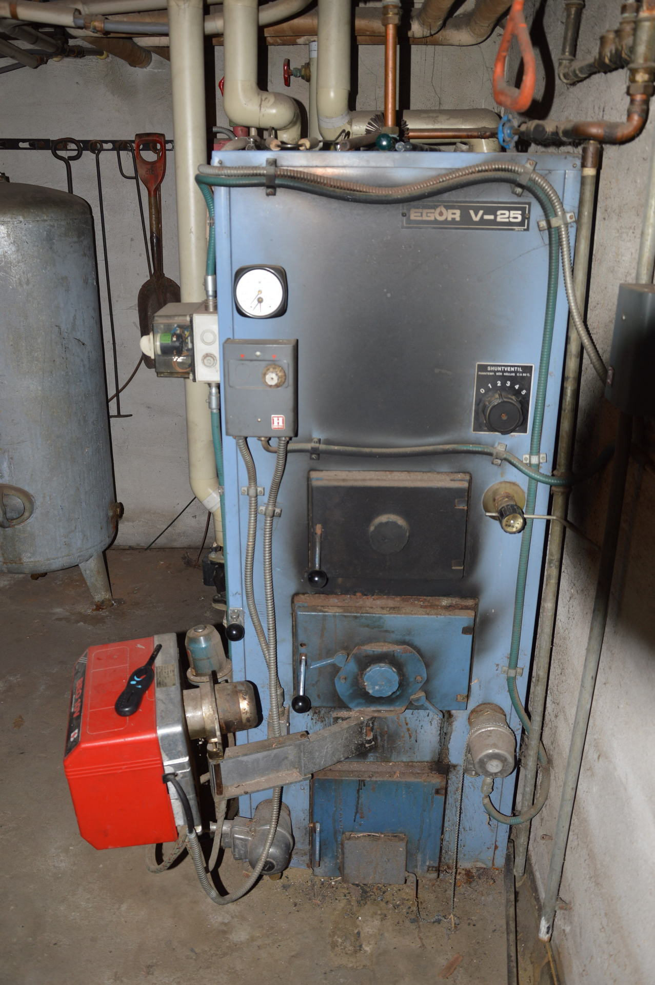 -Uppvärmning genom vattenburen centralvärme via värmepanna för ved/olja, elpatron samt ytterligare eldstäder som stöd, likaså luftvärmepump.