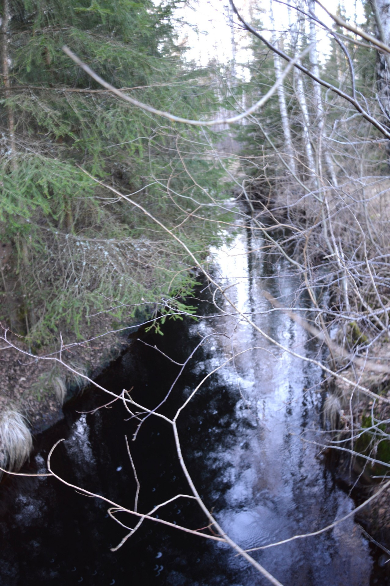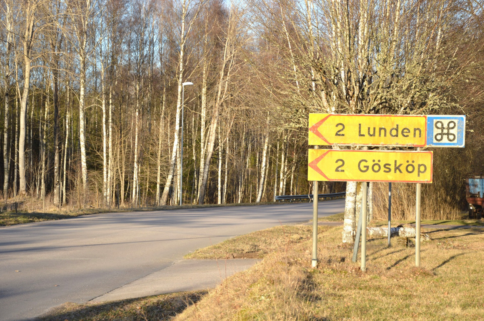 Kraftig bro i betong finns anlagd över Gösköpsån för att nå skogsmarken i väster.