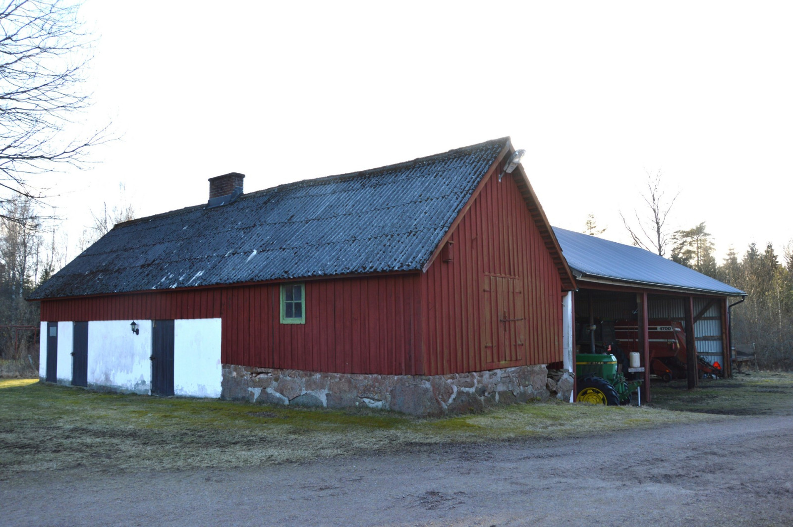 Uppskattad byggnadsstorlek ca 80 kvm. Uppförd i trä/murverk, stengrund och eternittak samt skorsten. Betonggolv. El finns.