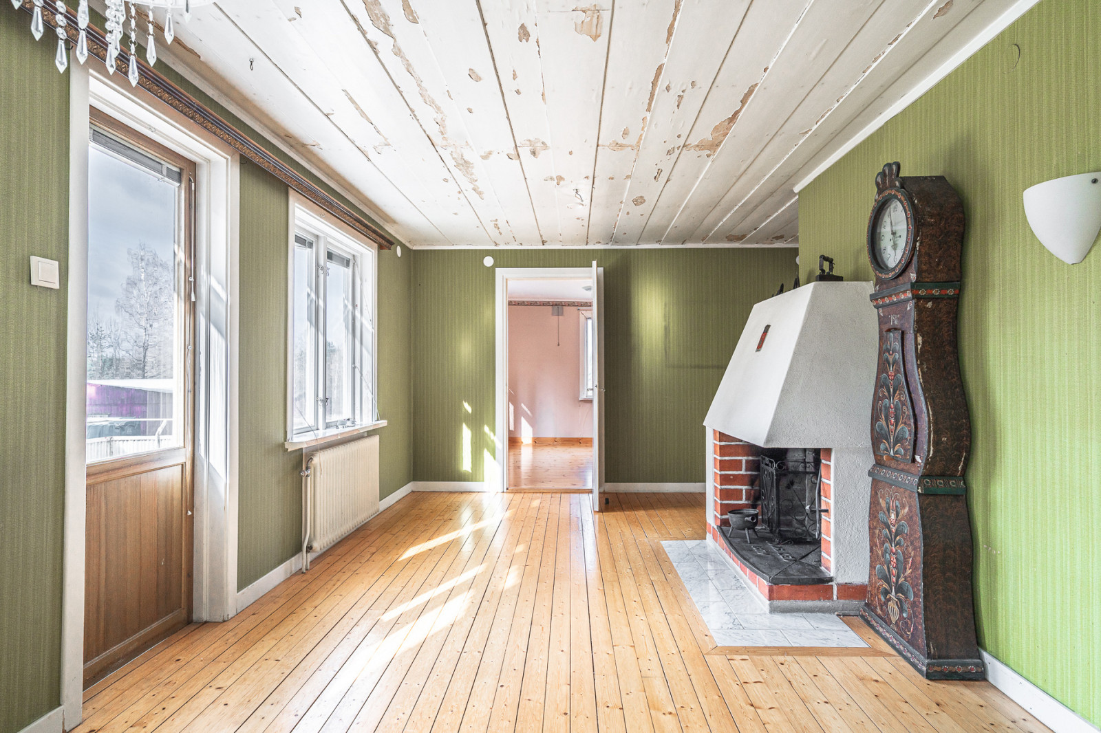 Boytan är uppskattad till ca 138 m² enligt fastighetstaxeringsuppgifter. Från markplan genom entrén når du en hall, till vänster finns köket och bortanför en groventré med tvättstuga och ackumulatortank. Rakt fram från hallen når du genom en korridor en WC med handfat samt trapp ner till en mindre matkällare. Vidare rakt fram finns ett sovrum med platsbyggd garderob. Till höger från hallen finns ett stort vardagsrum med en eldstad som är godkänd att elda i.