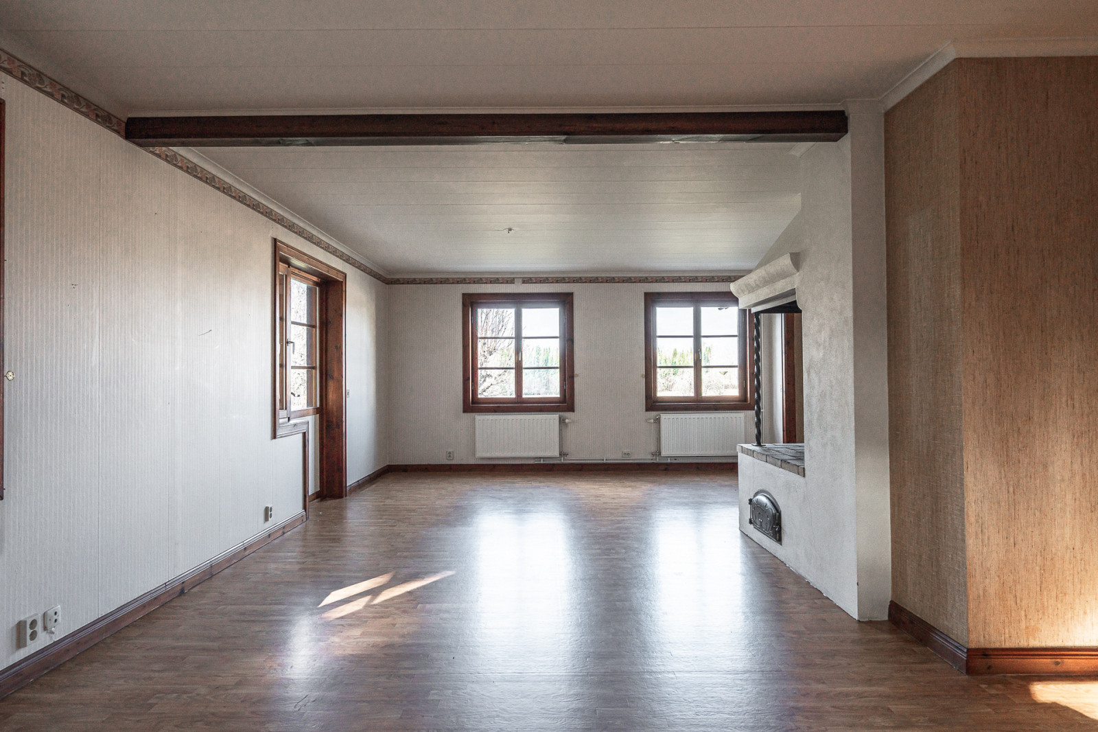 Boytan är uppskattad till ca 200 m² enligt fastighetstaxeringsuppgifter. Entréplan består av hall med pärlspontspanel, förråd, källartrappa och WC med handfat. Till vänster från entrén finns köket med kombinerad kyl/frys, diskmaskin och spis. Vidare från köket finns ett mindre förråd samt skafferi. Fortsätter du vidare når du ytterligare två rum med parkettgolv som tidigare använts som kontor och vardagsrum.