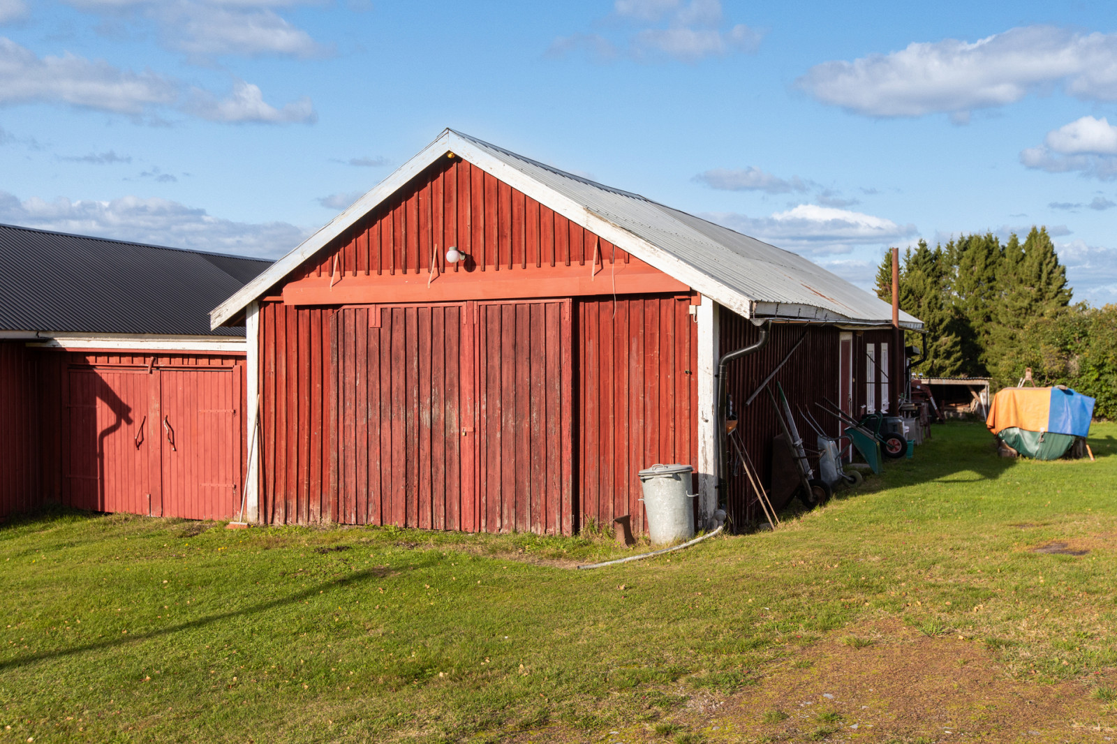 Äldre ladugård som är iordningställd till oisolerat bilgarage med grusgolv och snickarbod som är uppvärmd med luftvärmepump. Byggnaden är uppförd i trästomme med plåttak och stående brädfodring. Även påbygg med mindre bilplats. Byggnadsarea ca 106 kvm.