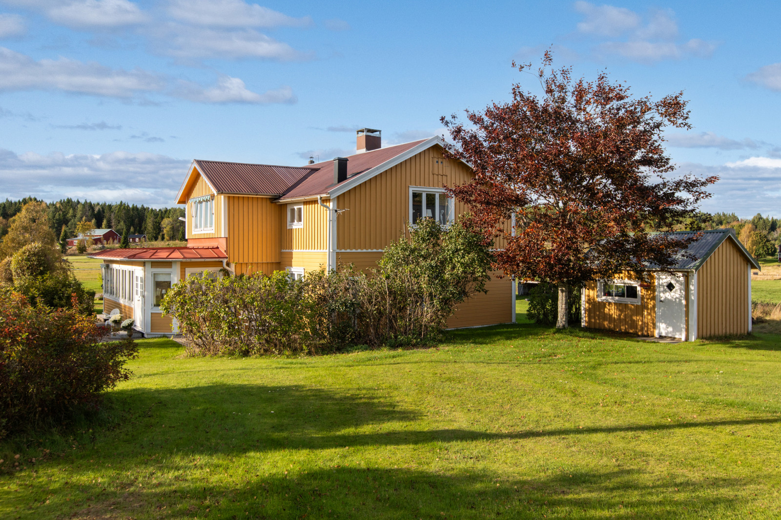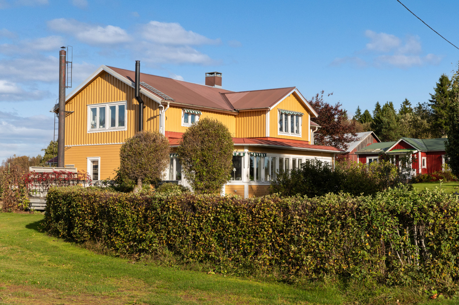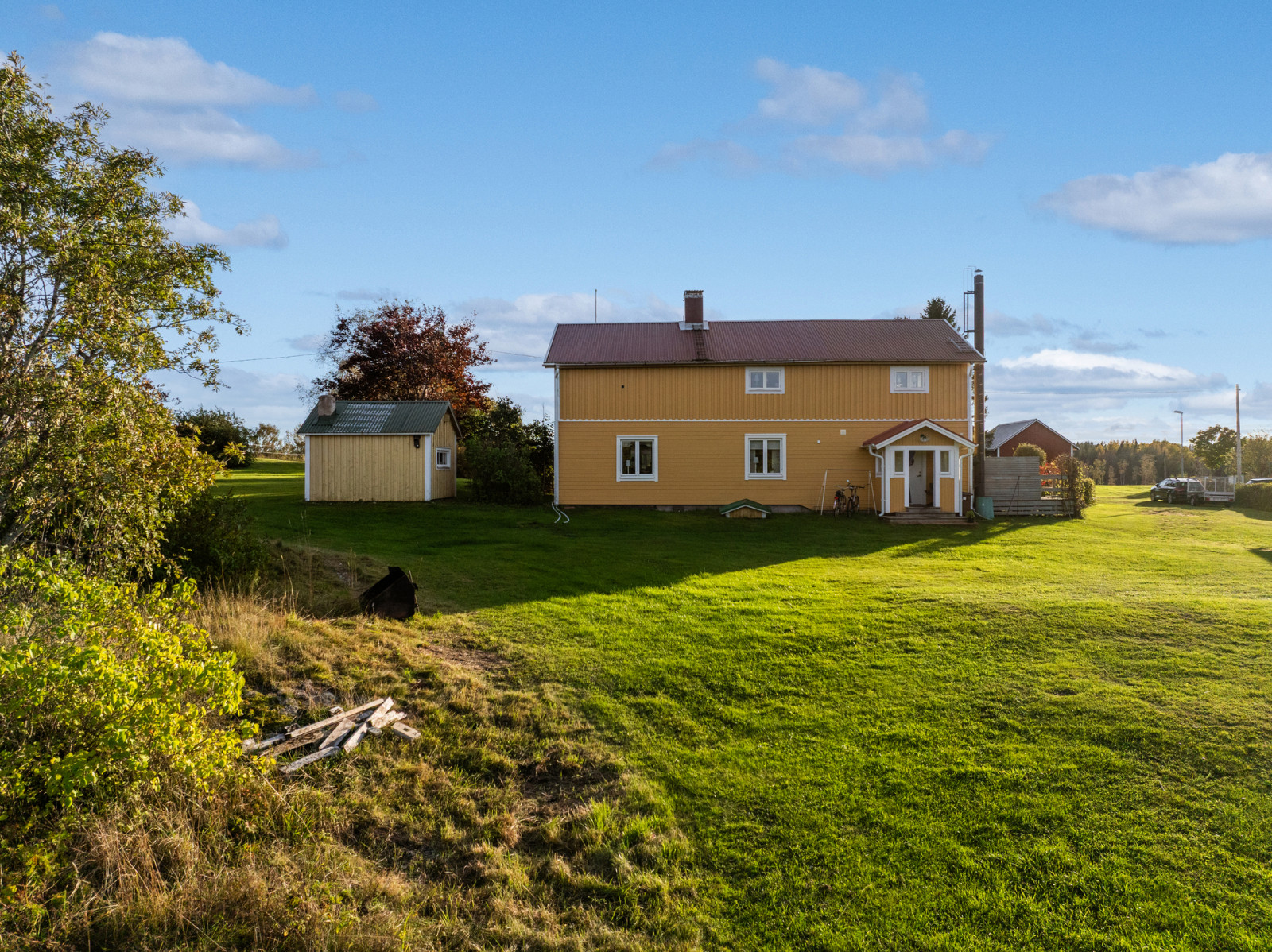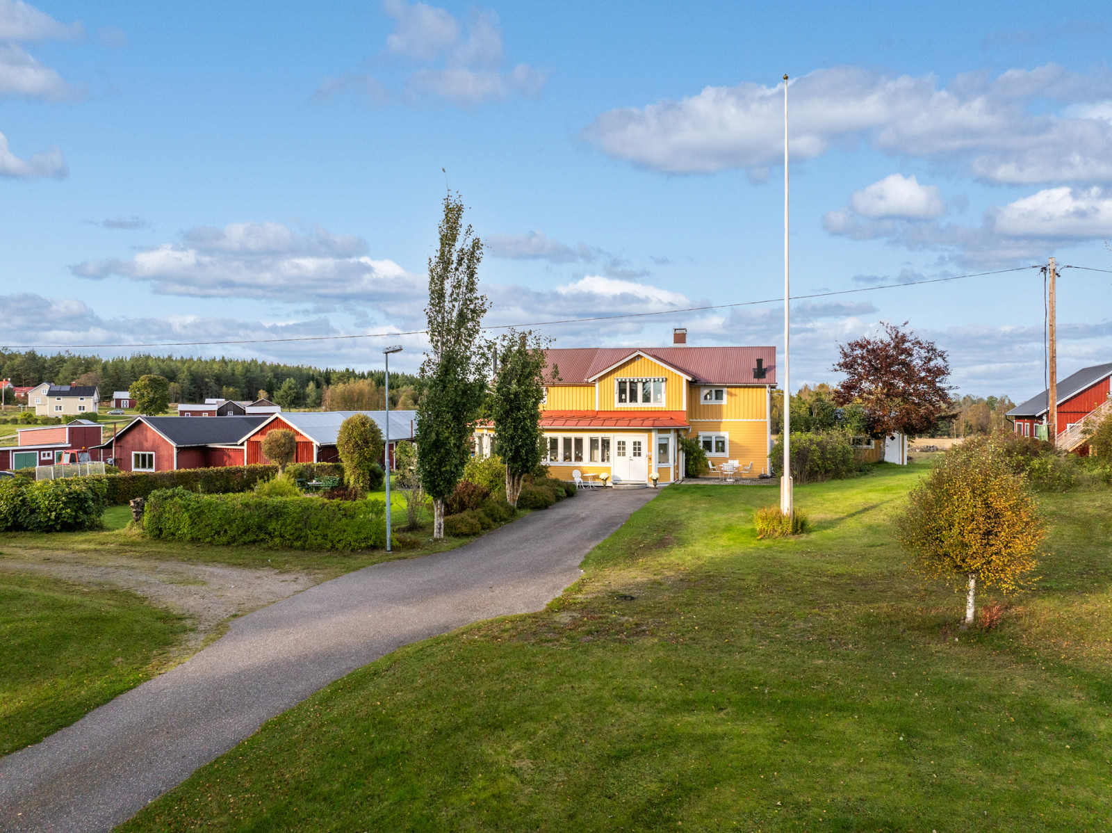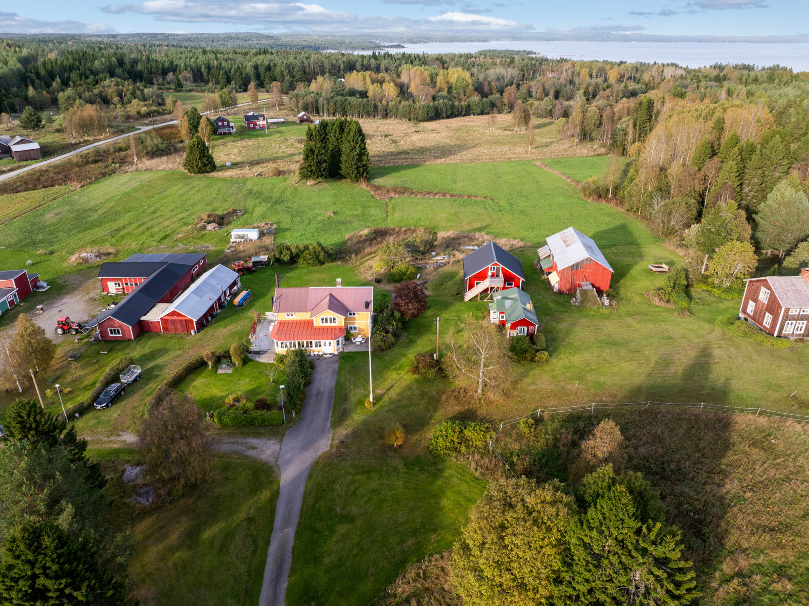 Bostadshuset utstrålar värme och hemtrevnad med sin solgula fasad och lantliga läge. Här bor du ostört på landet, samtidigt som gården lämpar sig utmärkt för hästverksamhet, hobbyjordbruk eller dig som söker ett liv nära djur och natur.