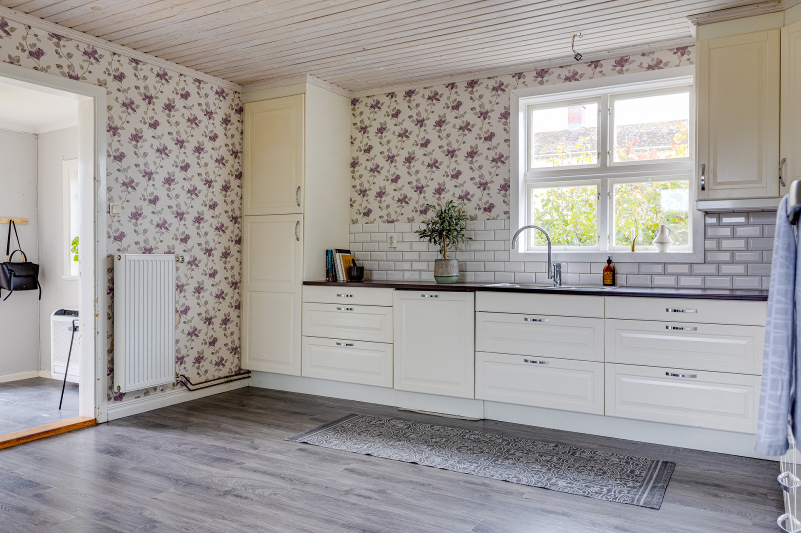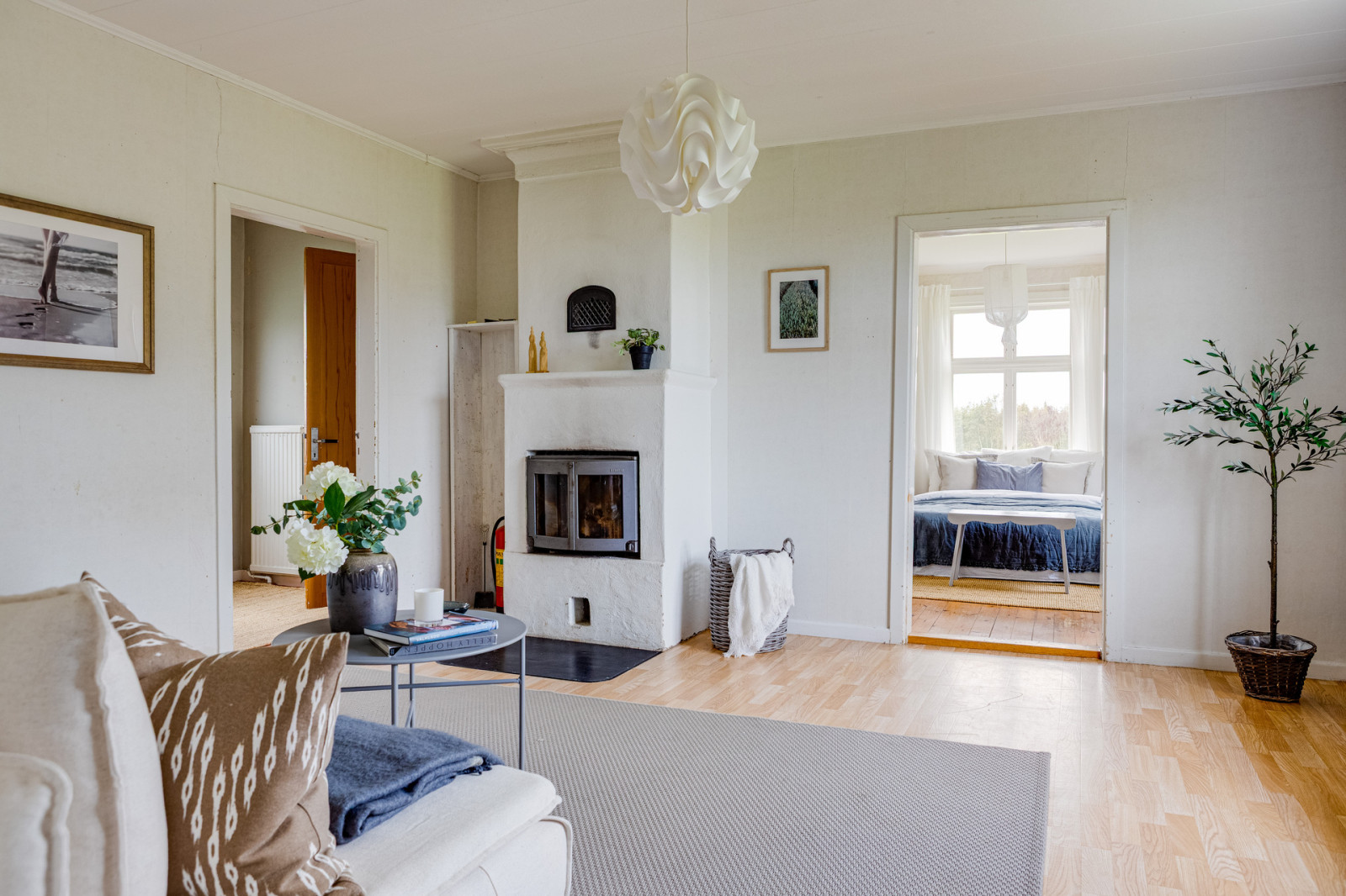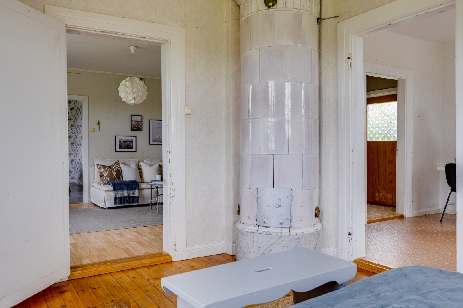 Nedervåningen innefattar två entréer en i norr och en i öster. Därtill finns ett rymligt kök med matrum, badrum med tvättstuga, vardagsrum med en kamin och två rum varav ett med en kakelugn. Skorstenen har provtryckts och sotats under hösten 2025 och är godkänd. Kakelugnen är inte godkänd för användning. Övervåningen består av en oinredd vind. Här kan du som ny ägare, med dina egna idéer sätt din egen prägel. Under huset finns en charmig matkällare.