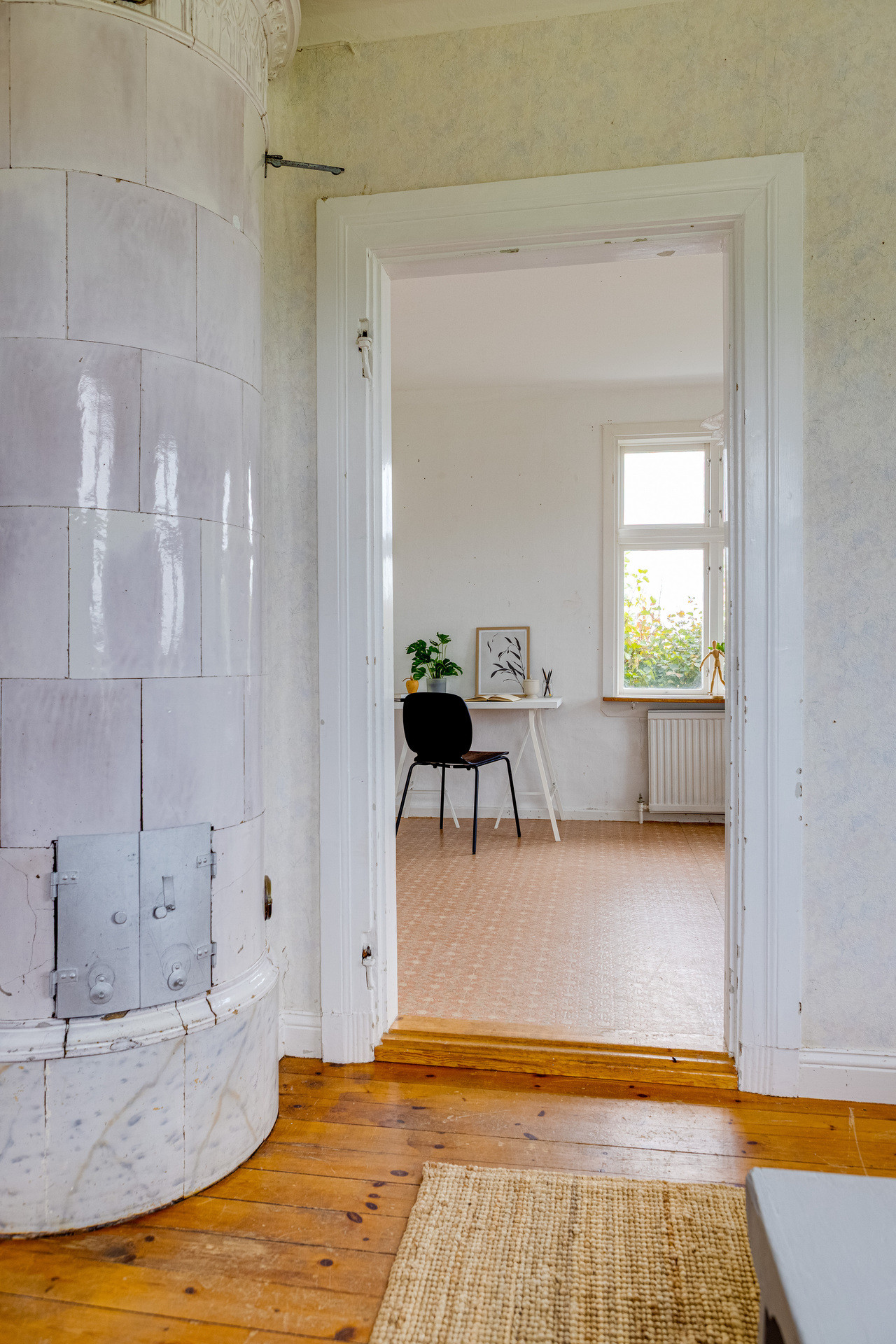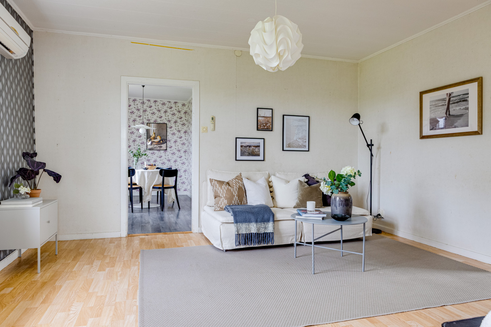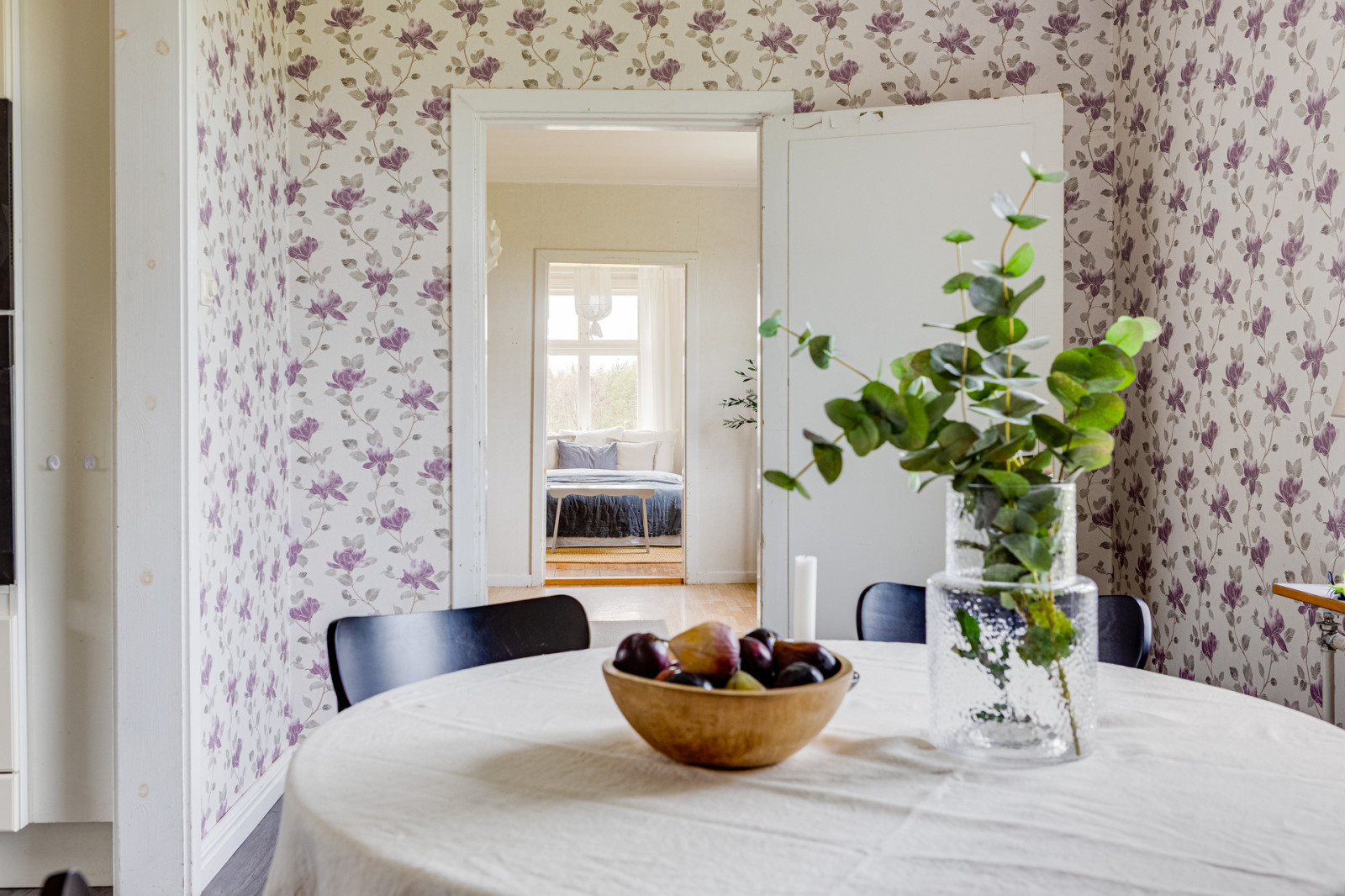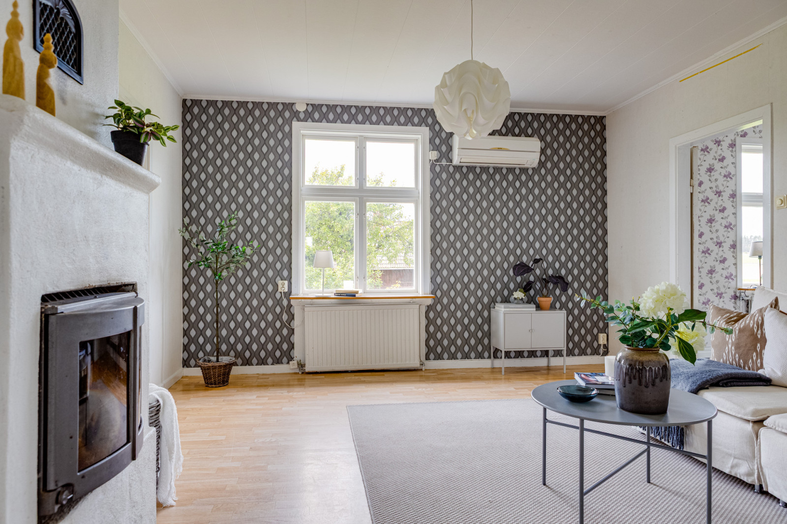 Nedervåningen innefattar två entréer en i norr och en i öster. Därtill finns ett rymligt kök med matrum, badrum med tvättstuga, vardagsrum med en kamin och två rum varav ett med en kakelugn. Skorstenen har provtryckts och sotats under hösten 2025 och är godkänd. Kakelugnen är inte godkänd för användning. Övervåningen består av en oinredd vind. Här kan du som ny ägare, med dina egna idéer sätt din egen prägel. Under huset finns en charmig matkällare.