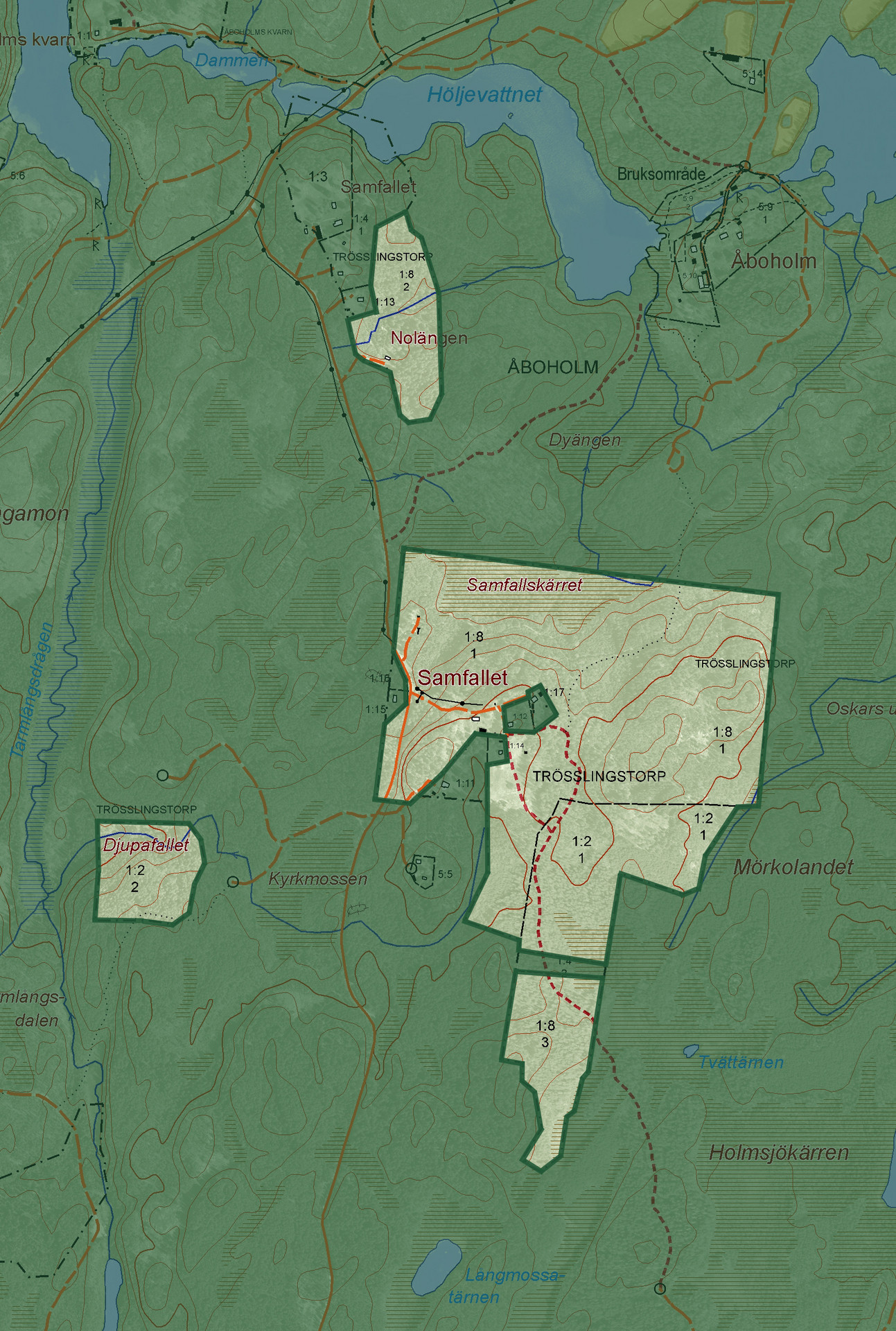 I Tivedens trolska skogslandskap är Trösslingstorp, Nolängen och Samfallet beläget. Under slutet av 1500-talet präglades stora delar av Finland av missväxt, markbrist och allmän oro. Svenska staten såg då möjligheten att erbjuda invånarna i den östra rikshalvan att bruka de otillgängliga och obrukade skogsmarkerna som vi idag kallar Finnmarker. De sydligaste av dessa områden finner vi idag i Tiveden där de första svedjefinnarna etablerade sig under 1500-talet. Trakterna kring Trösslingstorp har dokumenterade besättningar från 1700-talet och framåt, där nybyggarna bröt mark och bedrev svedjebruk.
