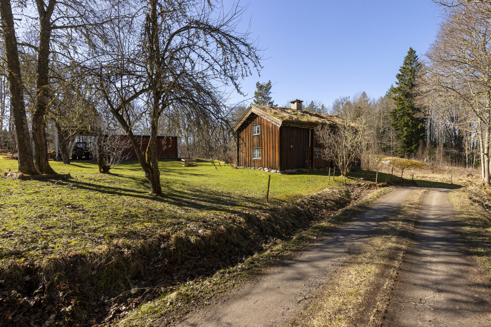 Försäljningsobjektet erbjuder två gårdscentrum, nordligt och centralt beläget på innehavet. Det södra bostadshuset utgörs av en äldre charmig timmerbyggnad med gräsbevuxet torvtak. Till gården hör även betjänande ekonomibyggnader och uthus. Den norra bostadsbyggnaden har ett mer modernt utförande, med intilliggande uthus.