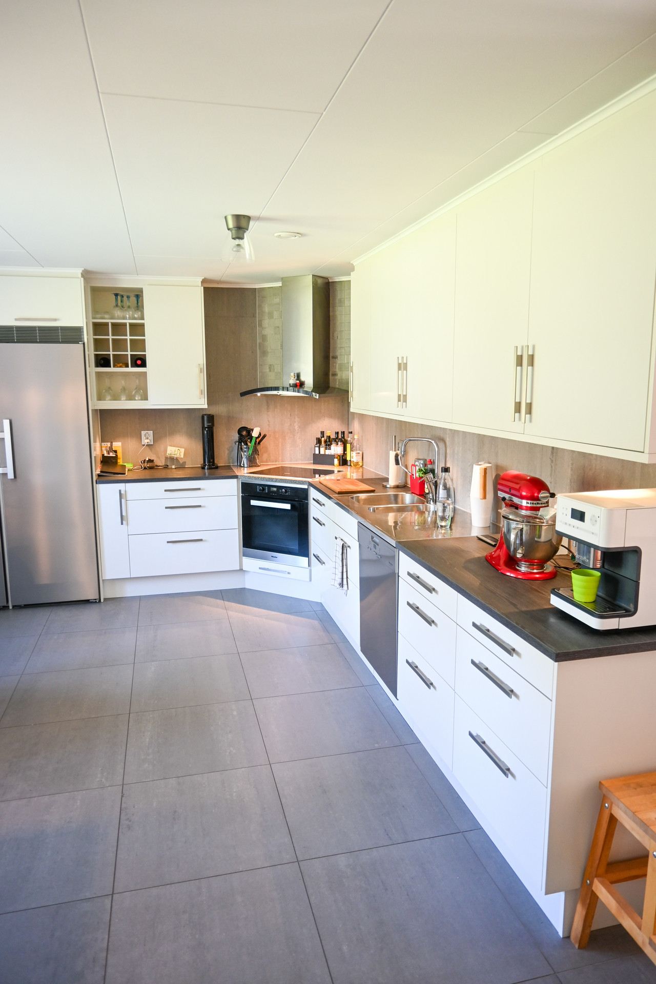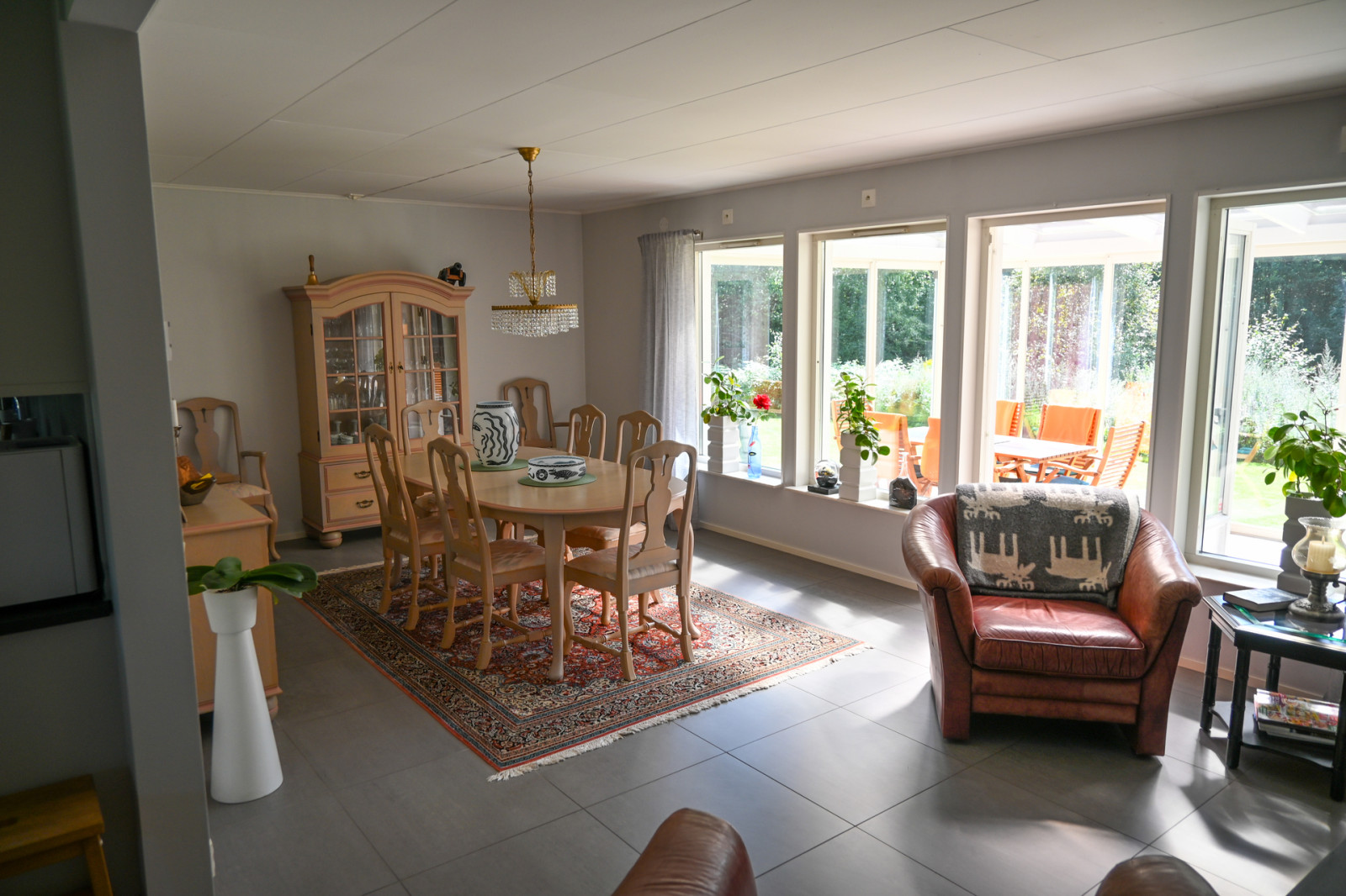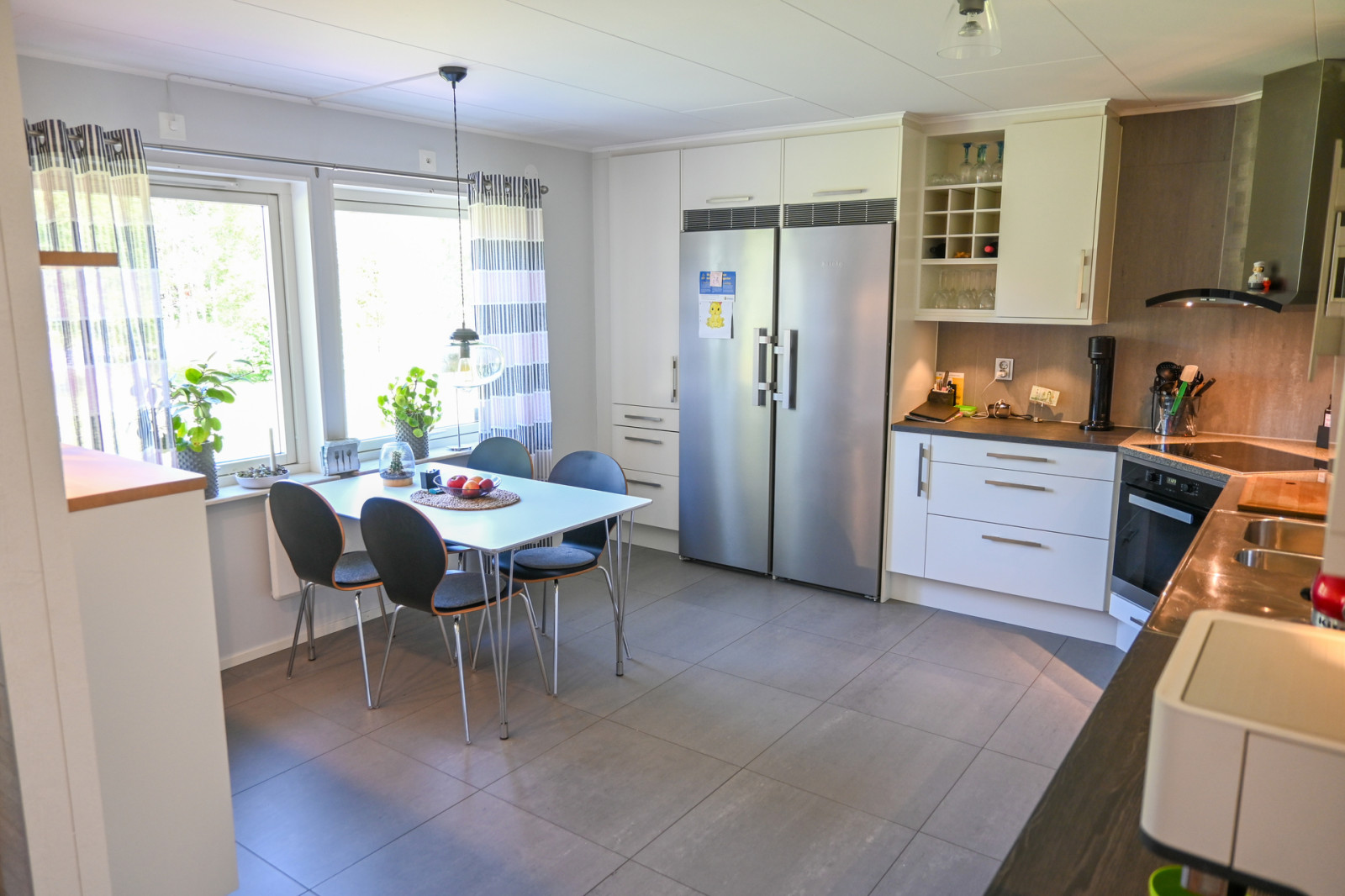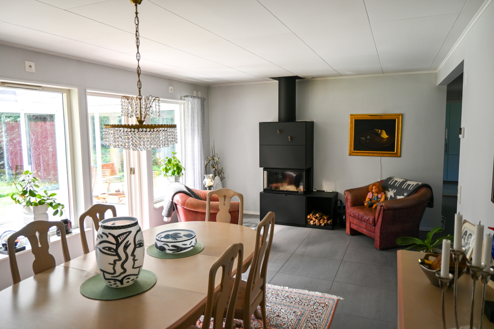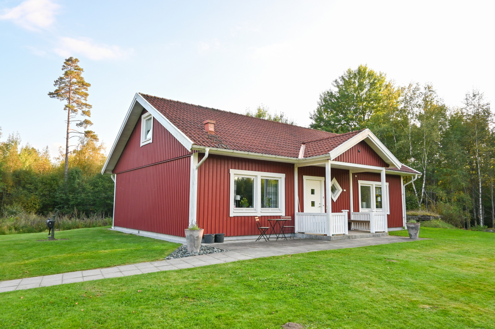 Willa Nordic i 1 plan med inredd övervåning uppfört 1996 samt totalrenoverat 2020/2021. Taxerad boyta om 133 m². Fasad med stående rödmålad träpanel med vita omfattningar, orange betongtegeltak och grundläggning med platta på mark. Vatten från djupborrad brunn, avlopp till 3-kammarbrunn med infiltration. Uppvärmning via NIBE F 370 frånluftsvärmepump från 2021 med vattenburen golvvärme i nedervåningen. El-element på övervåningen. Öppen planlösning från entré, kök och matrum med klinkergolv. Larm finns.