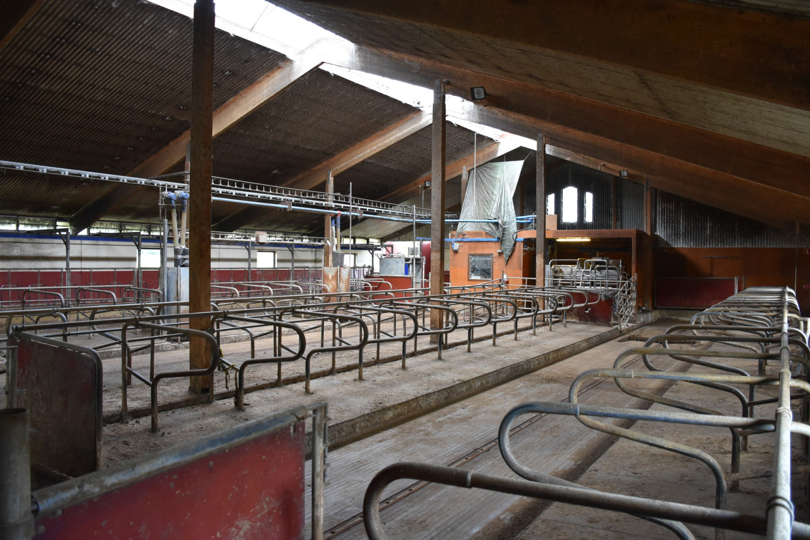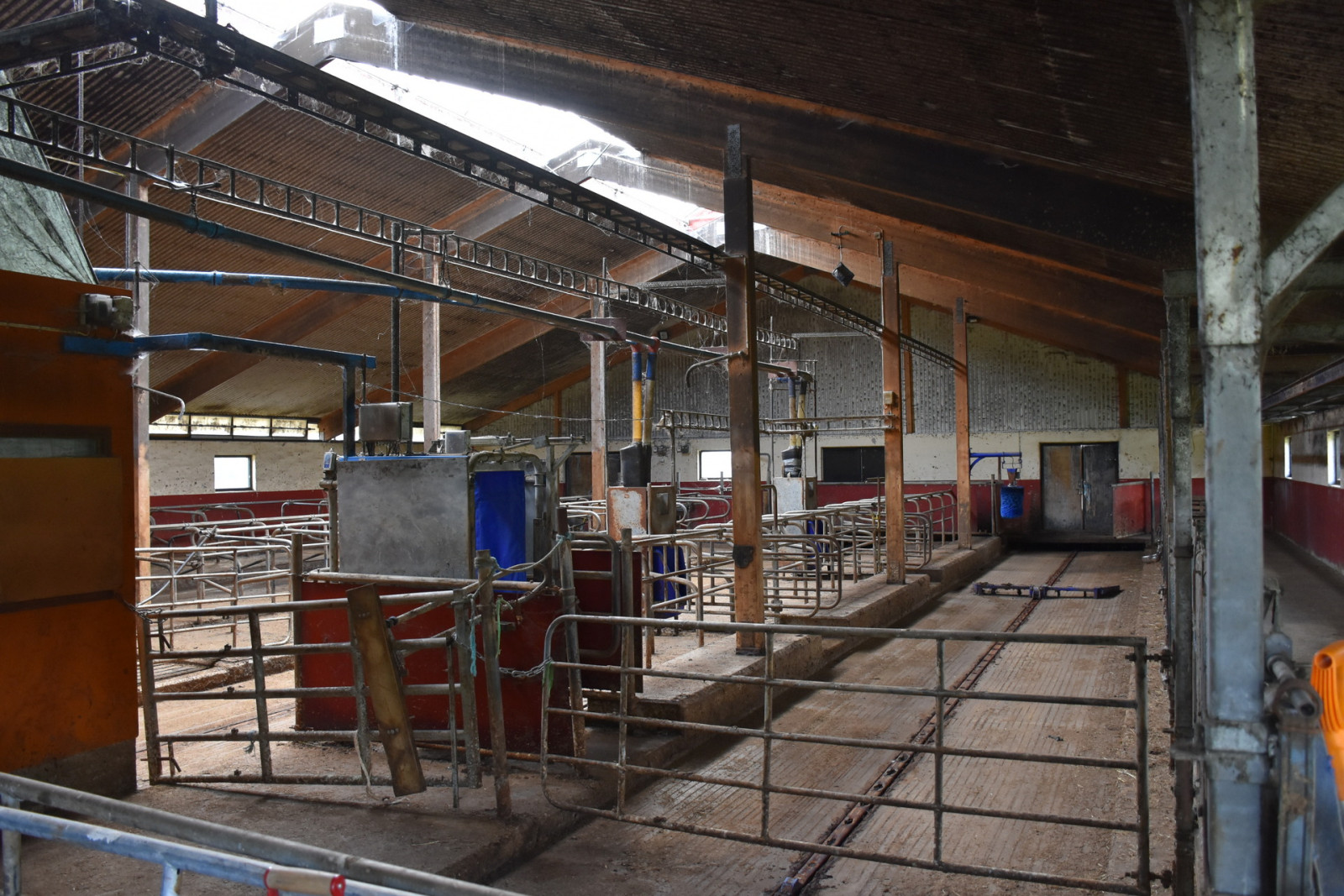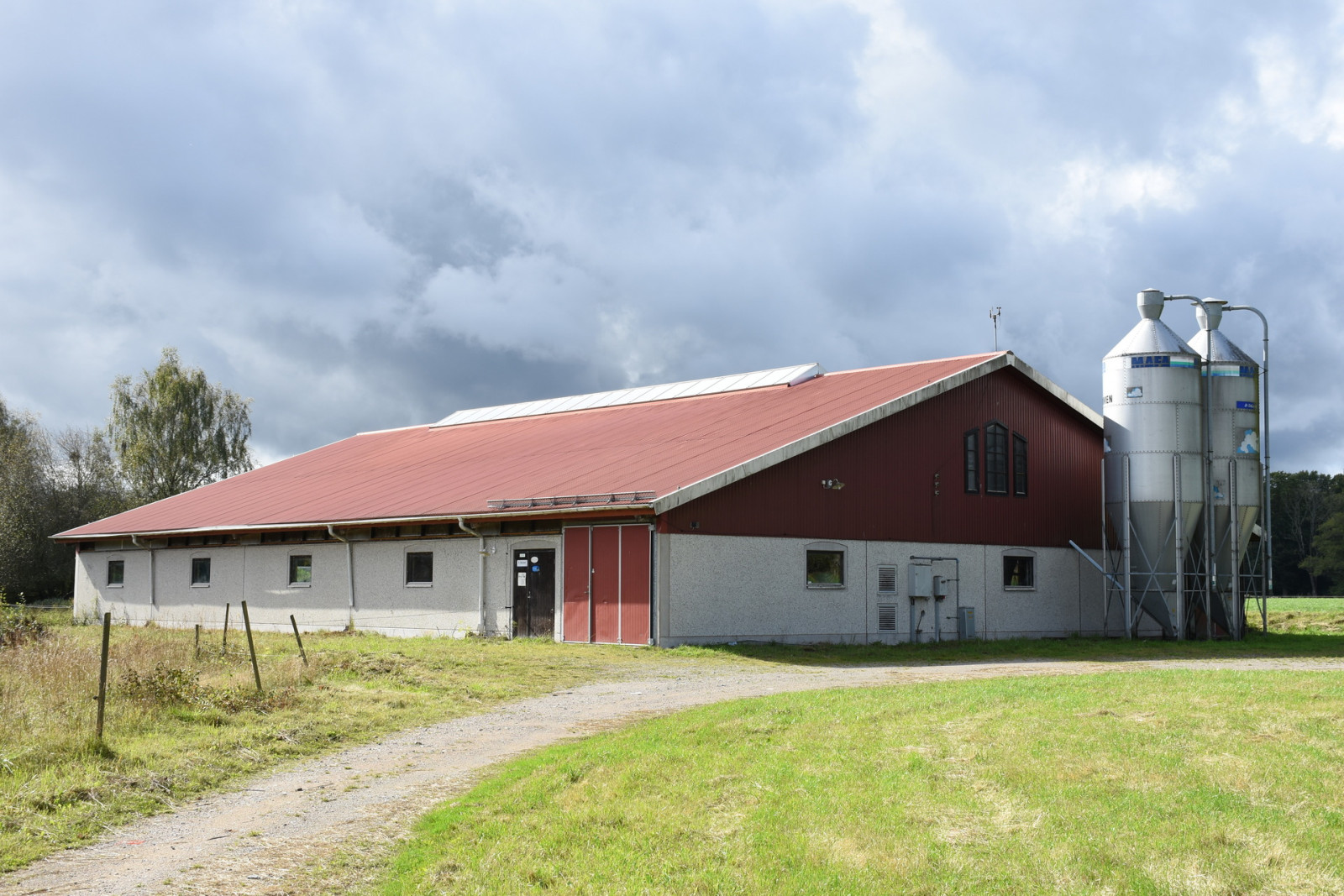 Inredning från DeLaval. 60 liggbås med mattor samt kalvning-/behandlingsbox. Tre skrapgångar med utgödsling, två kraftfoderautomater, ryktborste, nockventilation med reglerautomatik. Två kraftfodersilos. Traktordrivet reservelverk ingår. Mjölkrobot från 2004 DeLaval (uttjänt).