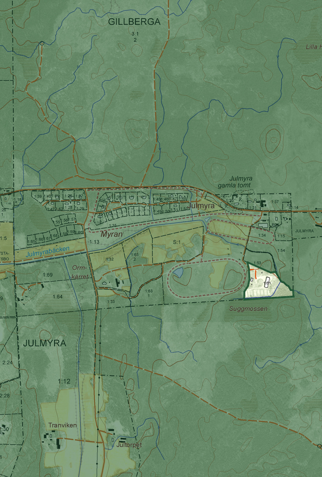 Fastigheten ligger granne till Julmyras travträningsanläggning med rundbana, rakbana, djupsandbana, backbana, ridstigar samt intilliggande ridhus.