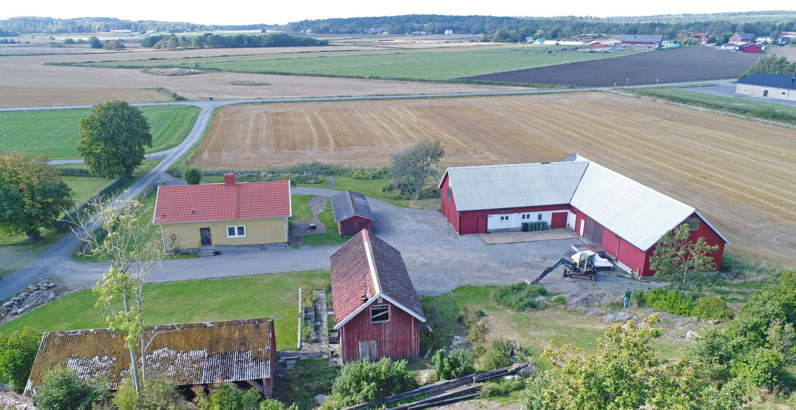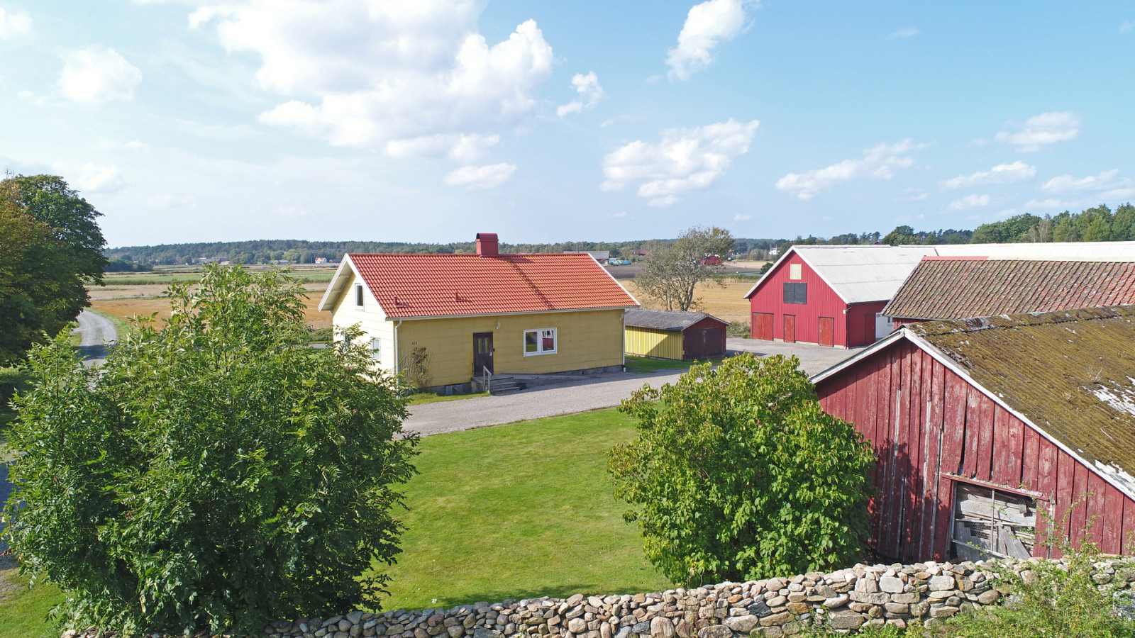 Gårdens bostadshus är ursprungligen uppfört på 1800-talet och ligger i ett soligt läge med utsikt över det öppna odlingslandskapet. När du tagit de tre trappstegen upp till ytterdörren och öppnar ytterdörren så möts man av en välkomnande hall. På din vänstra sida i hallen ligger det helkaklade badrummet och till höger kommer man ut i köket. I det lantliga köket finner ni en köksö, vedspis och matplats. Rakt fram från hallen ligger ett rymligt vardagsrum och fortsätter man till höger finner man husets matsal. På första våning finns ytterligare en hall. I hallen finns en värmande kamin och en trappa till andra våningen. Går vi ut genom dörren i den andra hallen så befinner vi oss på husets framsida och en härlig uteplats mot väster. På