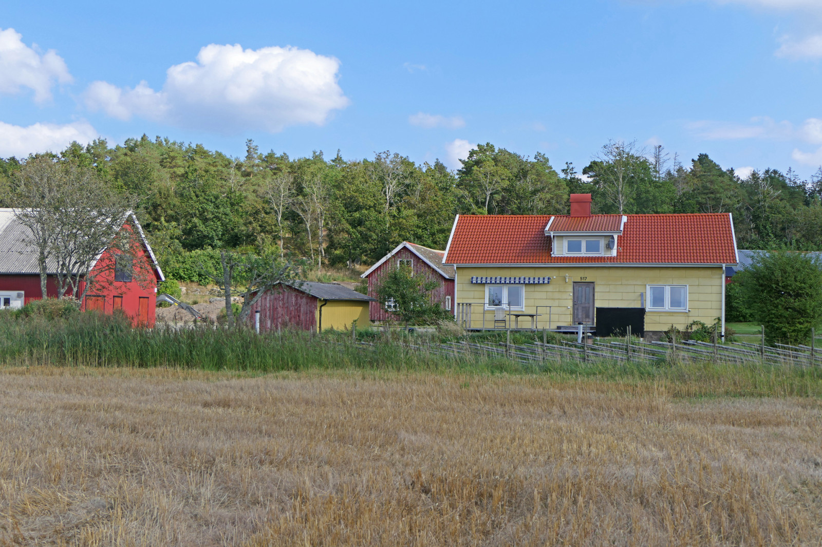Gård med närhet till havet som erbjuder boende, skog och rekreation.