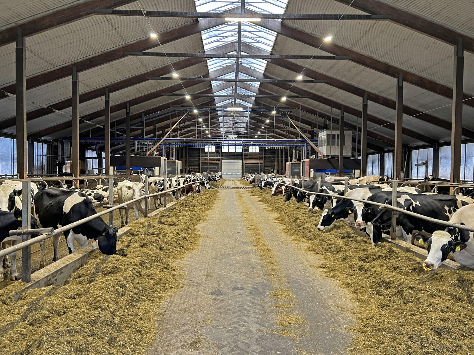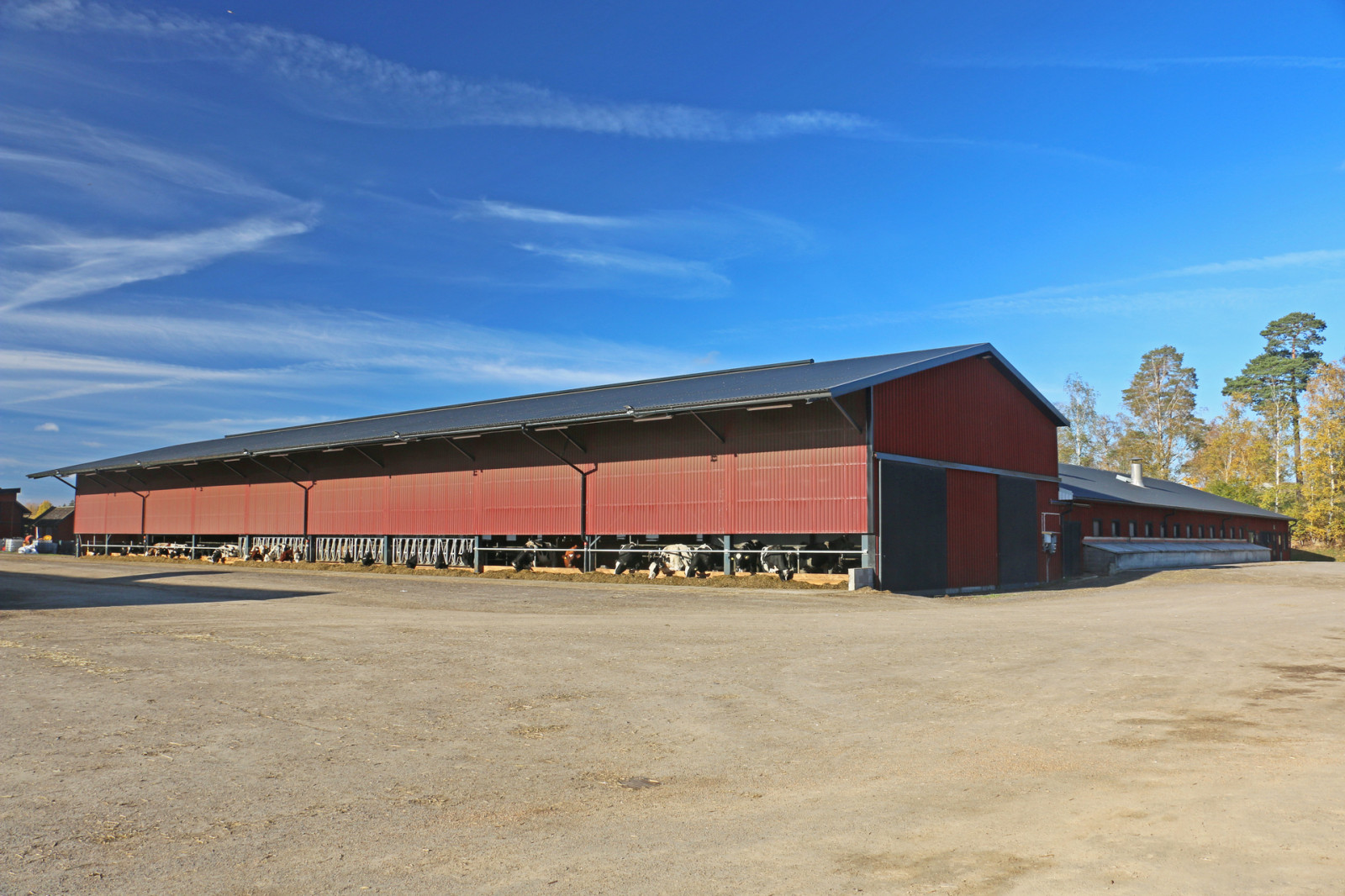 Byggnaden uppfördes 2008 av A-betong. 2023 skedde en större ombyggnad till robotmjölkning. Takstolarna är av limträ och vindskyddsgardinerna med öppning uppe är från Agrotel. Byggnaden är uppförd på betongplatta med en yta på ca 4 700 kvm med en invändig indelning för ca 330 kor. Öppna skrapgångar och tre båssängsrader i varje avdelning. Stort körbart foderbord i mitten. Anläggningen är utrustad med fem DeLaval VMS300 mjölkrobotar. Gödsellagring till en pumpbrunn och vidare till två satelitbrunnar på vardera ca 4 000 m³ som är placerade ca 900m åt vartdera hållet från gårdscentrum. Dessa är uppförda 2008 och 2015. Sju kalvningsboxar/sjukboxar, 30 sinkoplatser i djupströ fördelat på två boxar. 30 kubiks mjölksilo som töms varannan dag. Plattvärmeväxlare som förvärmer dricksvattnet för korna. Byggnadsmåtten är 80,5 x 37 meter för den stora delen och 78 x 20 meter för den mindre delen.