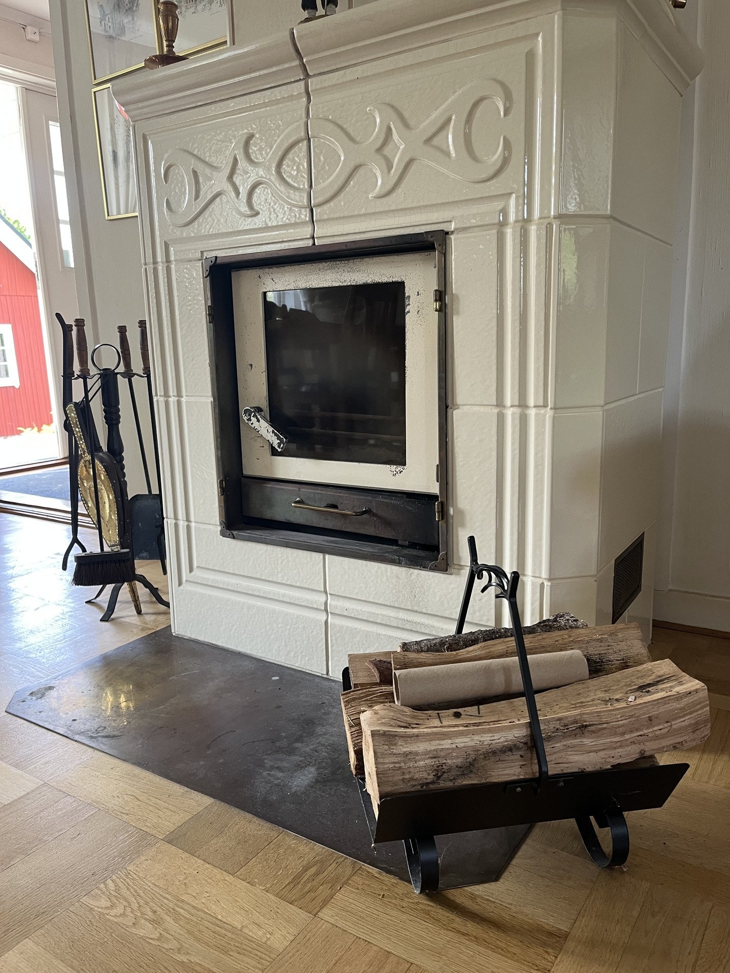 I källaren finns den mysiga vinkällaren med stiliga gråstensväggar, matchande tegelgolv och kamin. I övriga delar pannrum med Nibe värmepump VVM S320, hydrofor och vattenfilter, ytterligare pannrum med den gamla oljepannan som extra uppvärmningsmöjlighet samt förvaringsrum.