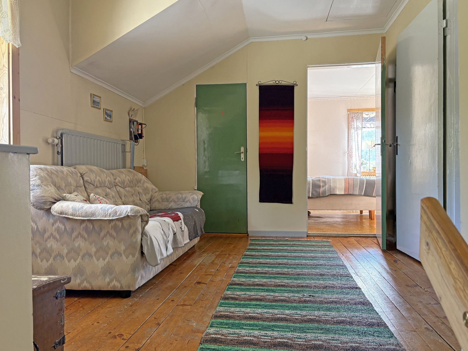 På övervåningen finns bra förvaring i form av förråd och kattvindar.