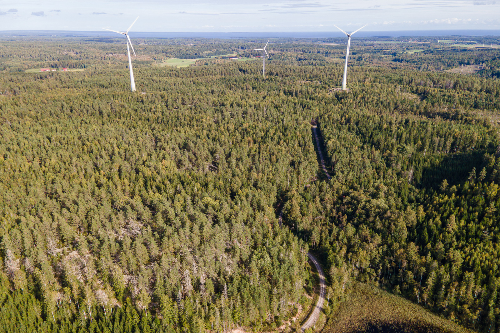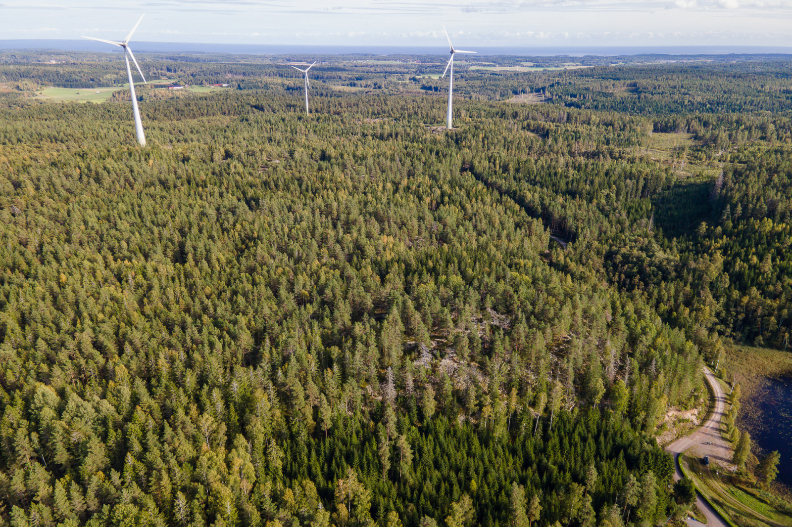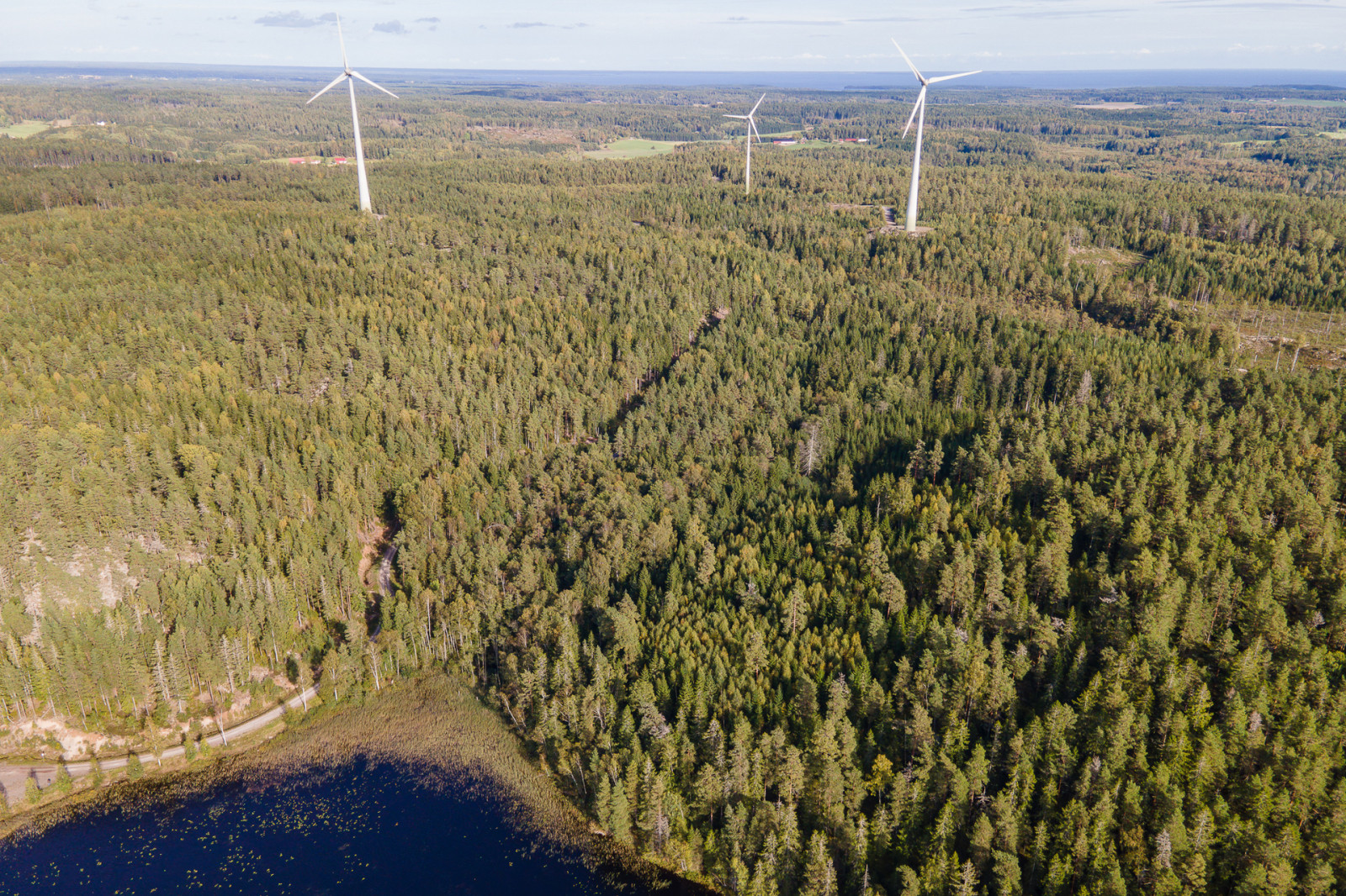 På en från skogsmarken avstyckad tomt finns ett vindkraftverk som ej ingår i försäljningen.