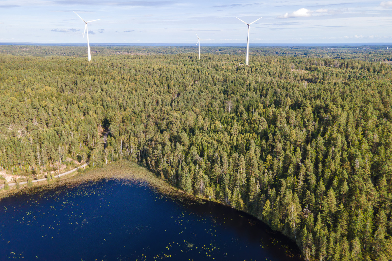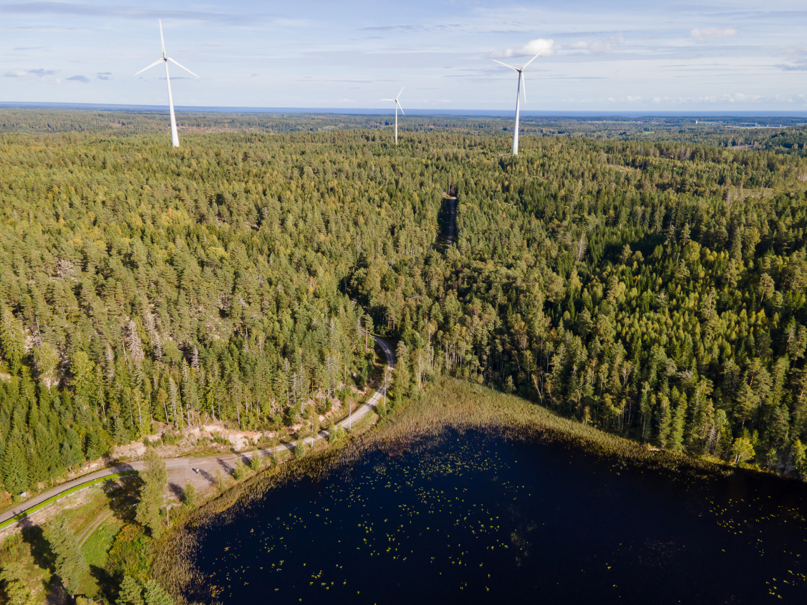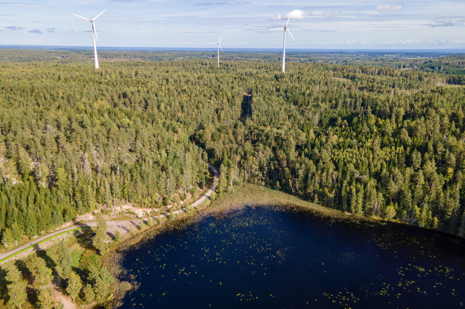 På en från skogsmarken avstyckad tomt finns ett vindkraftverk som ej ingår i försäljningen.