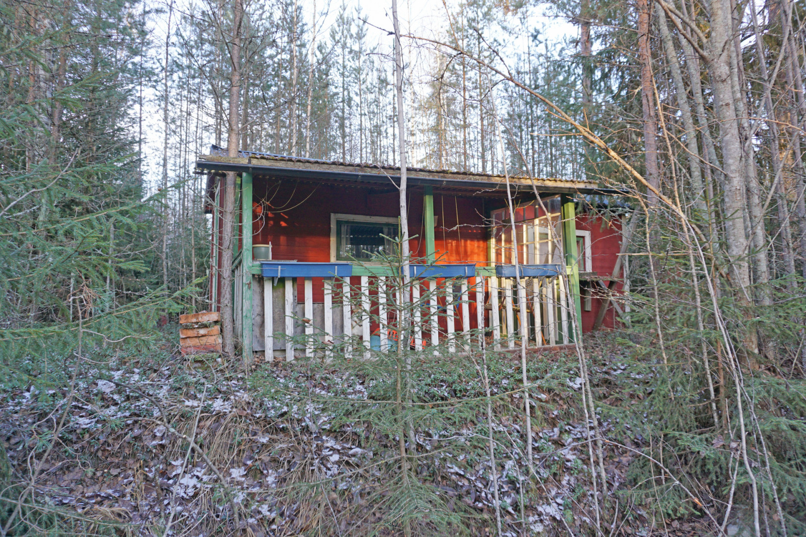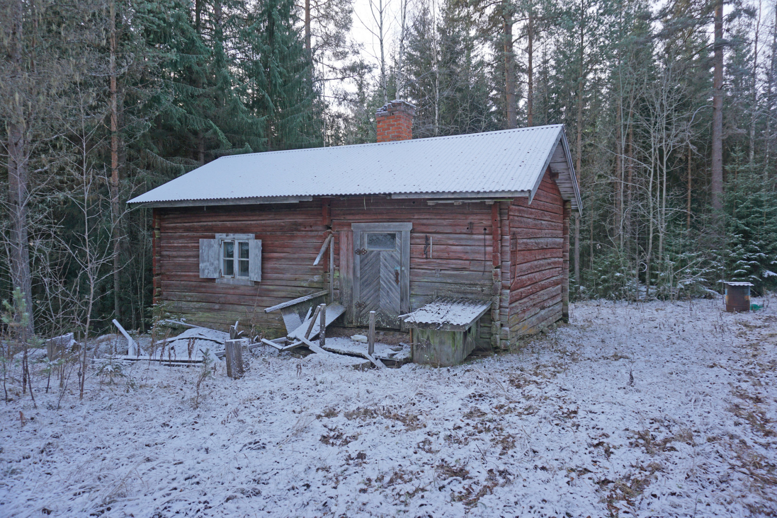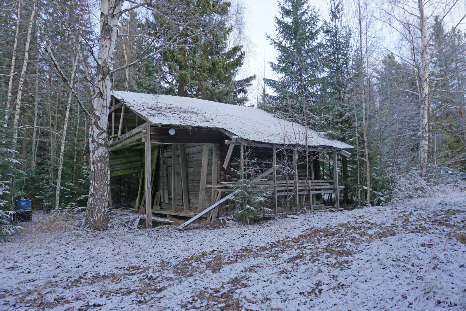 På försäljningsobjektets södra skifte finns en enklare stuga nära älven. Byggnaden är ursprungligen en barack och har endast ett rum. Troligen har dörren svällt eller stugan satt sig då det inte är möjligt att öppna dörren.