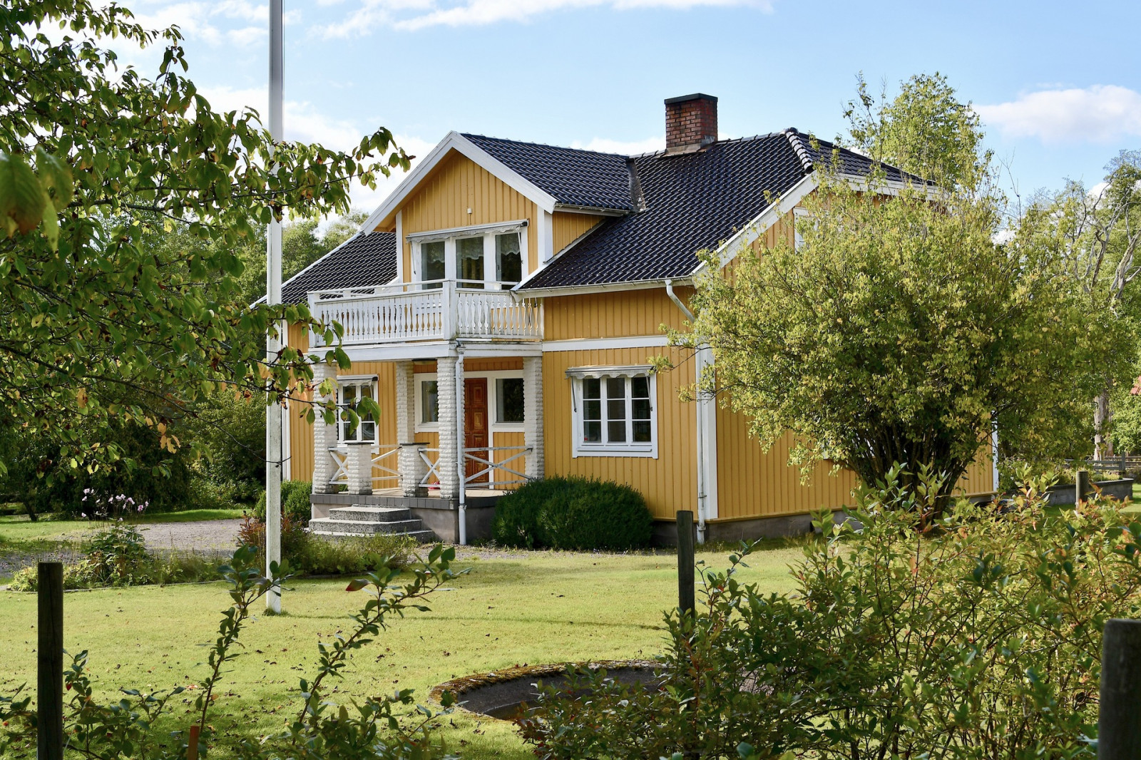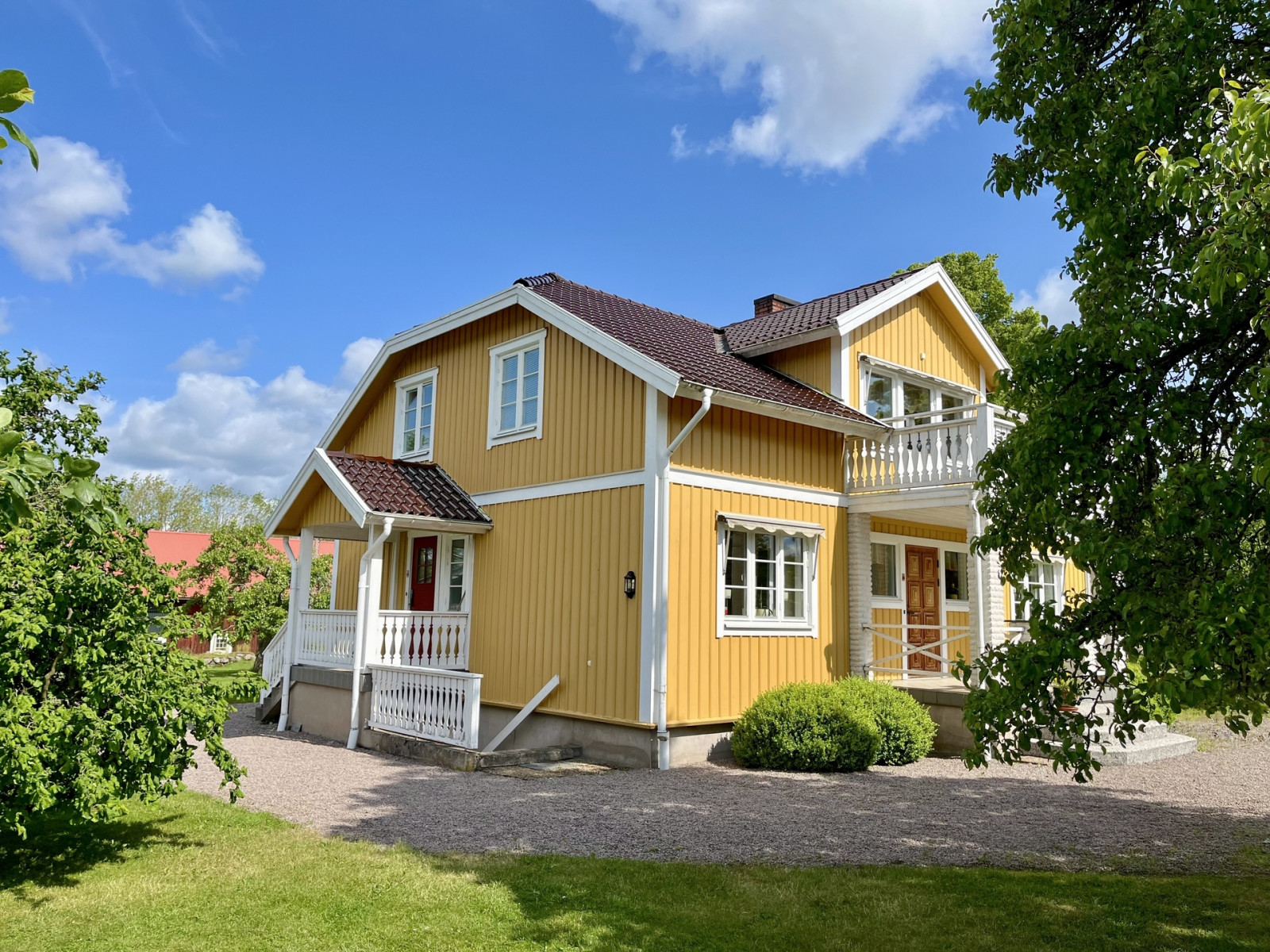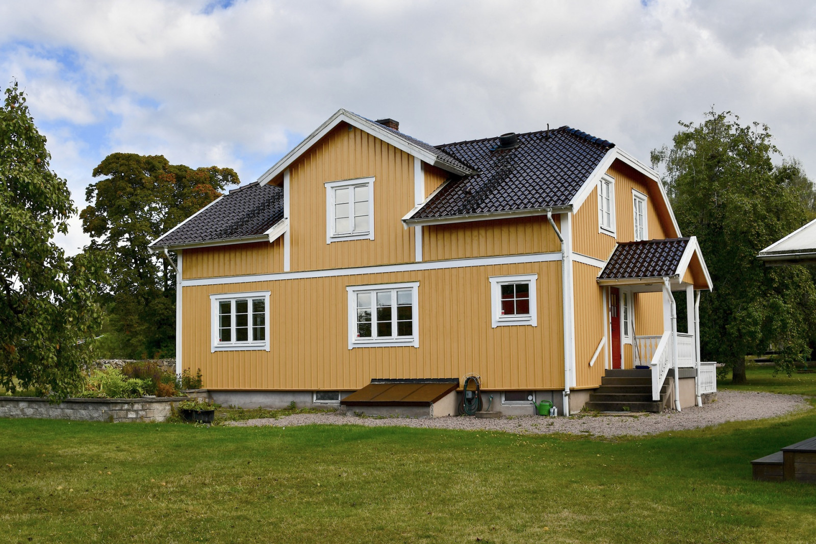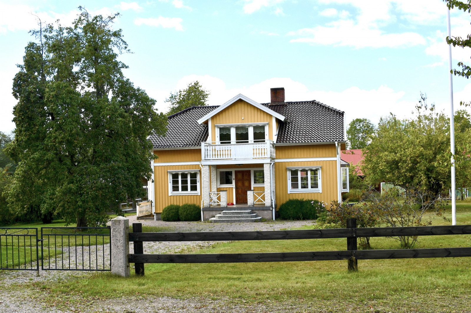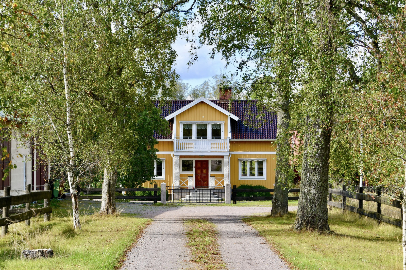 Invid mangårdsbyggnaden ligger ett friliggande, inglasat uterum samt ett växthus.