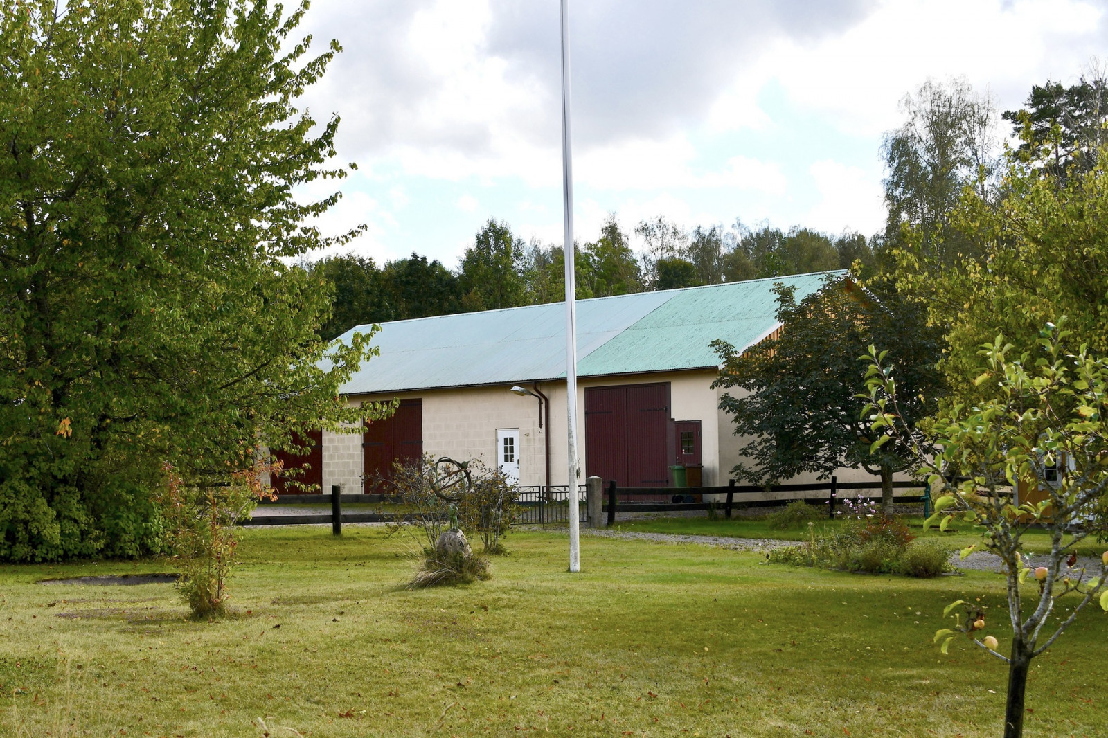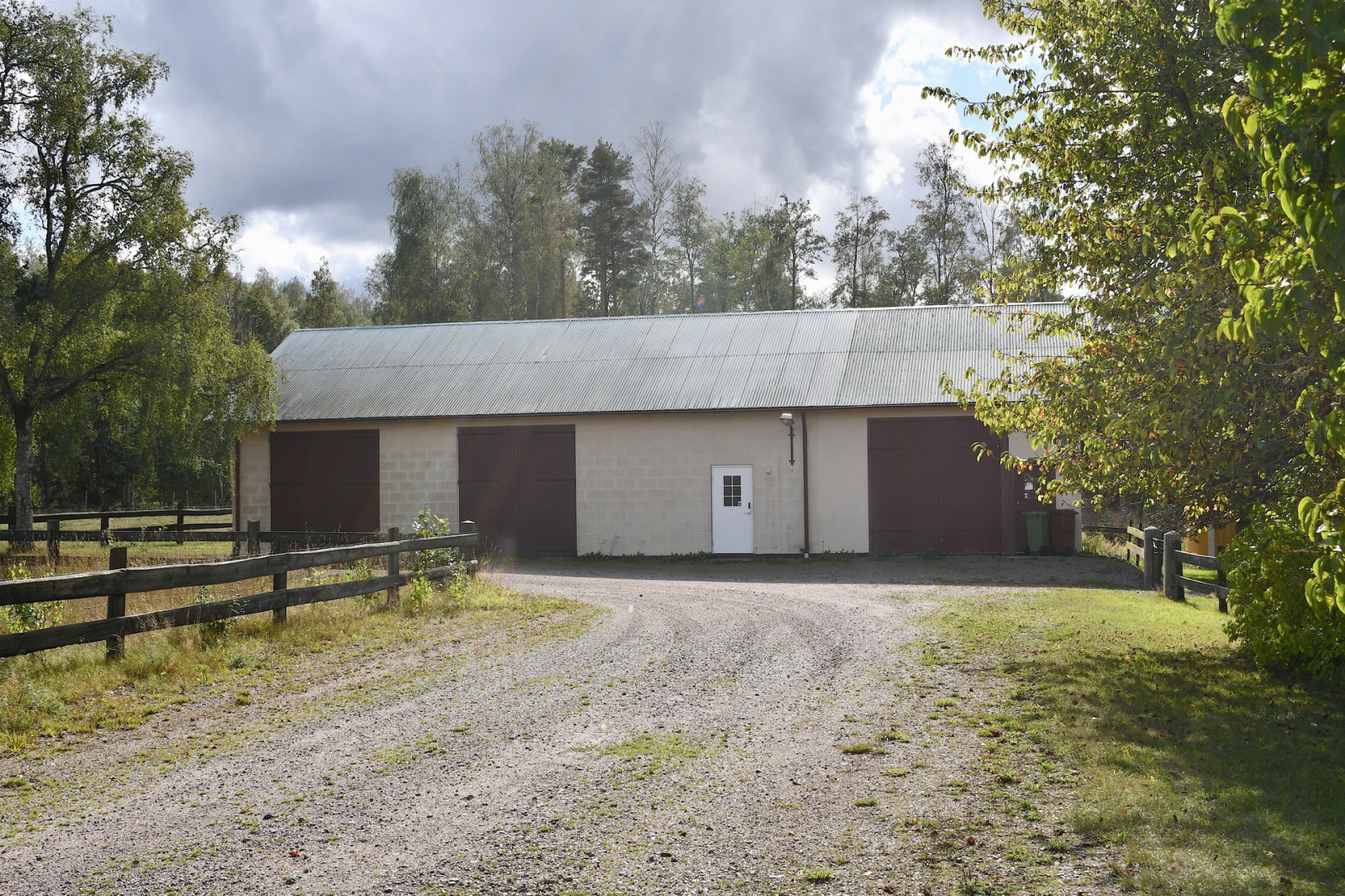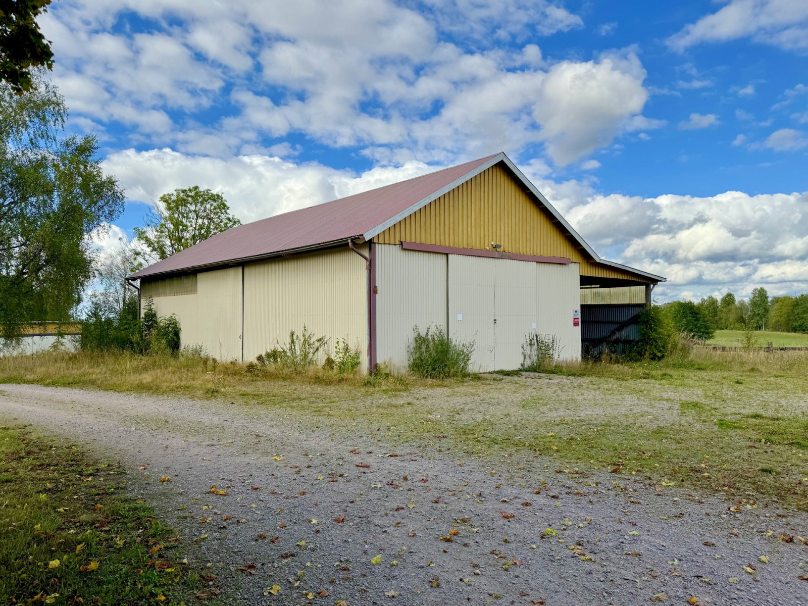 Maskinhall med byggnadsmåtten 20x10 meter. Grusat golv, plåttak och plåtfasad. Vidbyggt finns förrådutrymmen