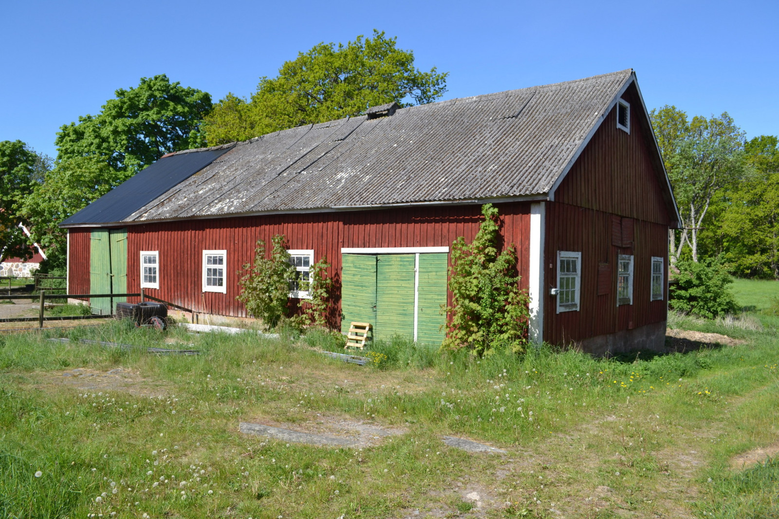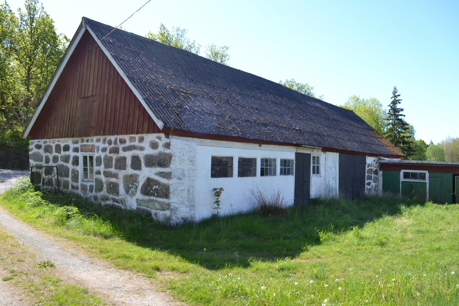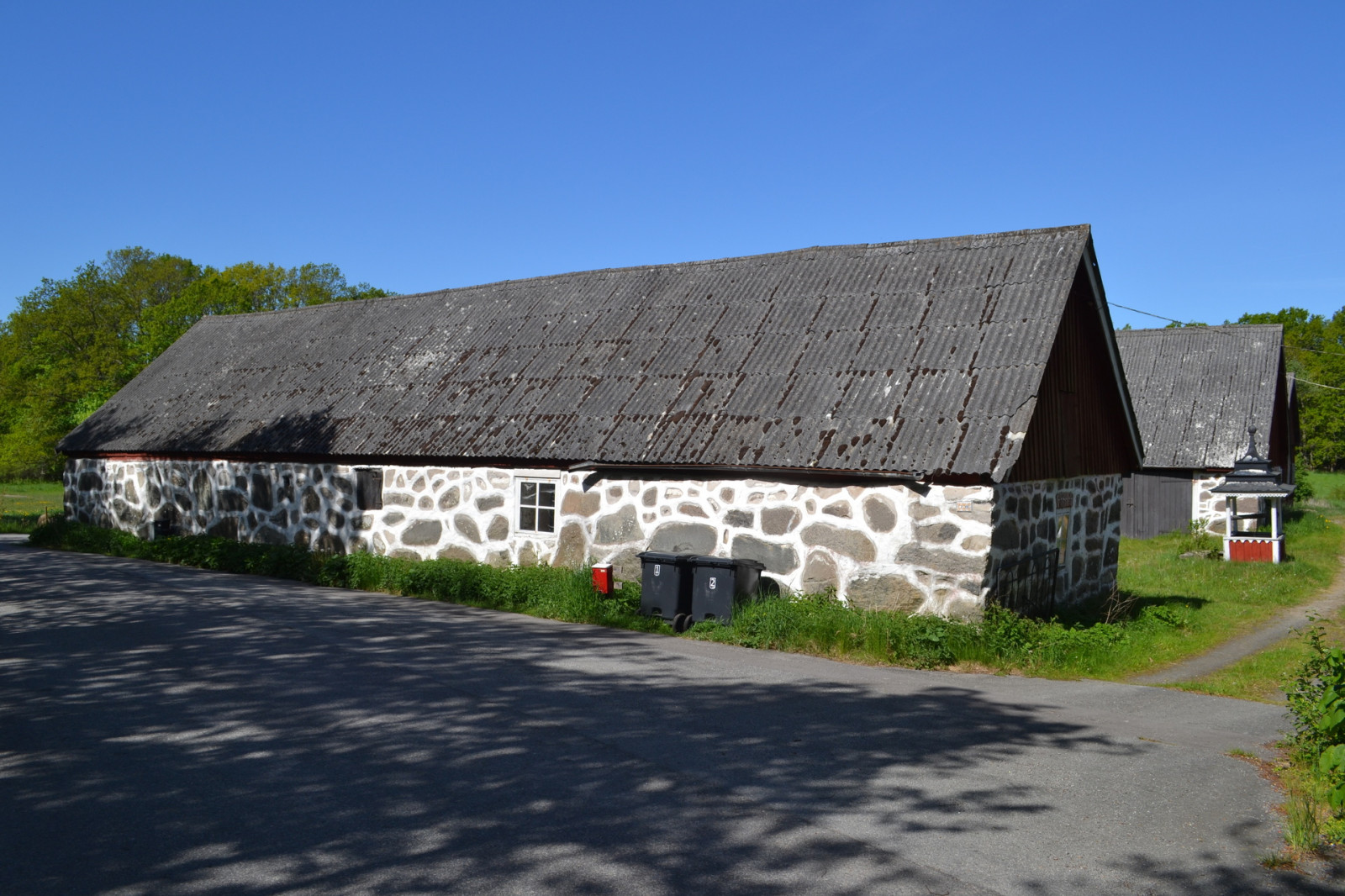 Den östra byggnaden är uppförd av gråsten under ett tak av eternit och inrymmer delvis äldre stall och förråd. Byggnadsmått ca 25 * 10 m.