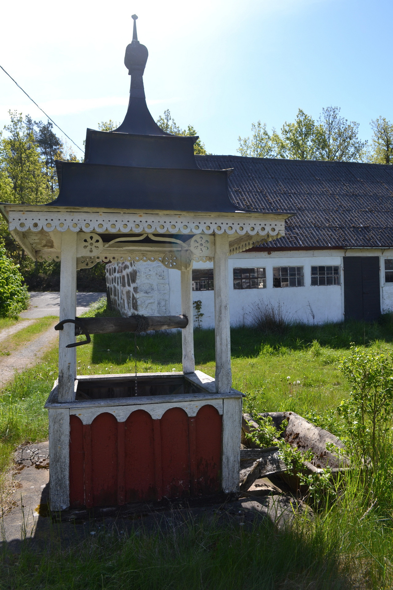 Huvudekonomibyggnaderna ligger delvis byggda i en U-formation med en äldre grävd dricksvattenbrunn mitt på gårdsplanen.