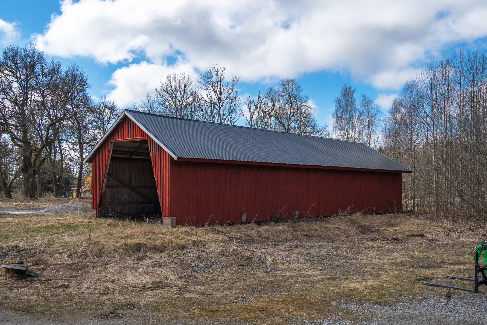 Intill den forna ladugården finns maskinhall som även har en spannmålstork. Maskinhallen är uppförd med stolpkonstruktion av trä och fasaden är beklädd med stående träpanel. Grunden består av plintgrund och taket är belagt med plåt. Mellan byggnaderna finns en tippgrop för avlastning av spannmål. Spannmålstorken är från Svenska Fläktfabriken. Spannmålstorken har tre konfickor i trä med en lagringskapacitet på cirka 220 m³ samt två planlagerfickor i trä, dessa rymmer 120 m³ och 150 m³.