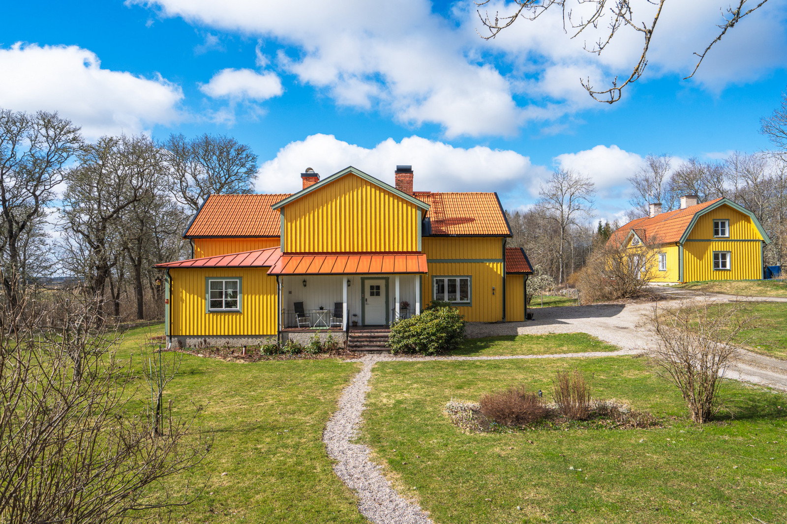 Historisk gård nära Eskilstuna med fint boende, ekonomibyggnader och mark.