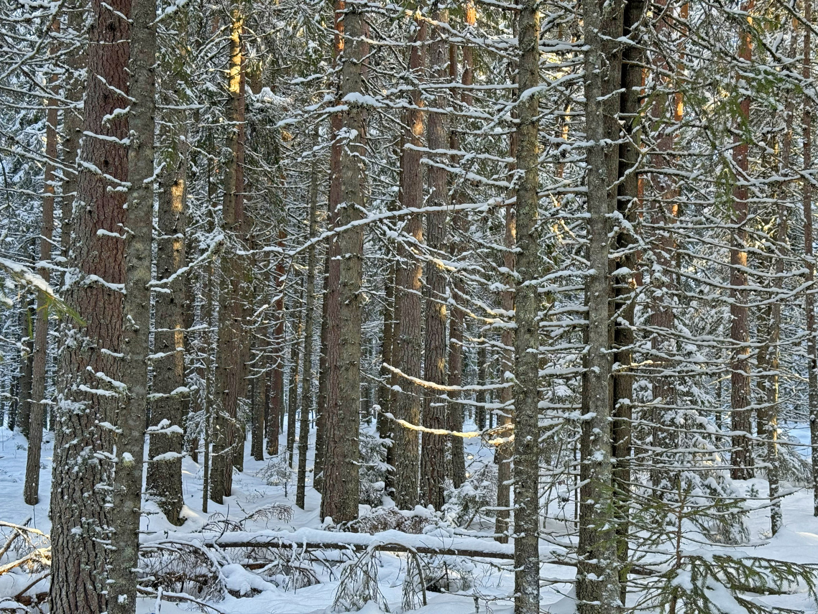 Skogsmarken utgörs av övervägande andel äldre avverkningsmogen granskog på bördiga marker med god bonitet.